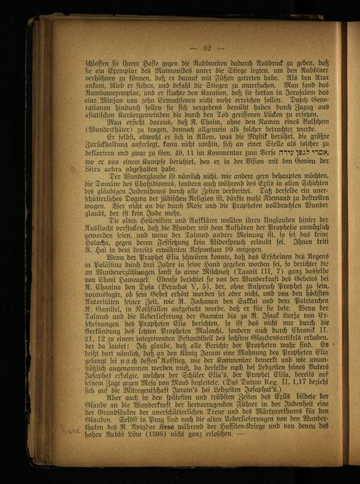 Aber auch in den spätesten und trübsten Zeiten des Exils bildete der Glaube an die Wunderkrast der hervorrageirden Führer in der Judenheit eine der Grundsäulen der unerschütterlichen Treue und des Märtyrerthums für den Glauben. Selbst in Prag sind noch die alten lleberlieferungen von den Wundcr- thaten des R. Avigdor Krso während der Hussiten-Kriege und von denen des hohen Rabbi Löw (1698) nicht ganz erloschen. —
