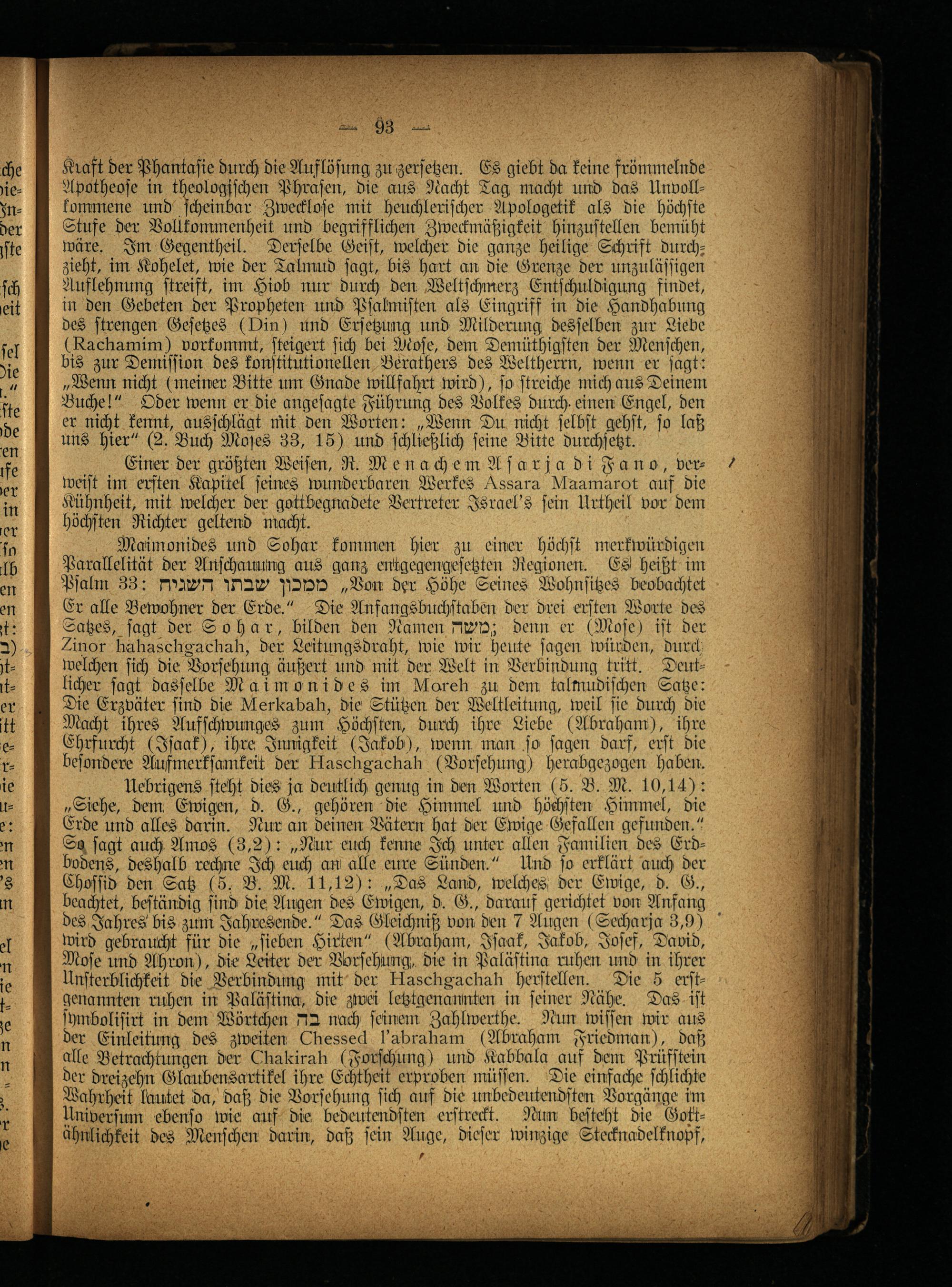 Einer der größten Weisen, R. Mena ch emAsarjadiFa n o , verweist im ersten Kapitel seines wunderbaren Werkes Nosara dkaamarot auf die Kkihnheit, mit welcher der gottbegnadete Vertreter Jsrael's sein Urtheil vor dem höchsten Richter geltend macht.
