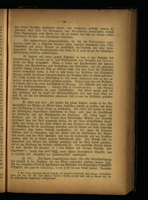 (S. 101.) „Die neuen Organisatoren sagen: Die erste Grundbedingung des Choßid ist der Frohsinn, der vor Allem unversehrt erhalten werden muß. Für den religiösen Dienst ist das Endziel das Abstreifen des Körperlichen kltvir'SNN das auch der Sclnilcllan Hrucl: H 98 für das Gebet fordert. Darunter