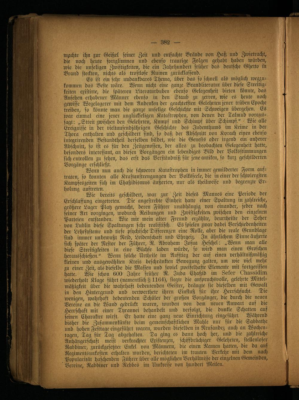 Es ist ein sehr undankbares Thema, über das so schnell als möglich lvegzu- kommen das Beste wäre. Wenn nicht eine ganze Brandliteratnr über diese Streitigkeiten existirte, die späteren Literaturbnben ebenso Gelegenheit bieten könnte, das Ansehen erhabener Männer ebenso in den Staub zu zerren, wie es heute noch gewisse Wegelagerer mit dem Andenken der geachtetsten Gelehrten jener trüben Epoche treiben, so könnte man. die ganze unselige Geschichte mit Schweigen übergehen. Es war einmal eine jener unglückseligen Katastrophen, von denen der Talmud voraussagt: „Streit zwischen den Gelehrten, Kamps und Schimpf über Schimpf." Wie alle Ereignisse in der vieltansendjährigen Geschichte des Jndenthums im Keime in der Thora enthalten und geschildert sind, so daß der Abschnitt von Korach einen ebenso integrirenden Bestandtheil derselben bildet, wie die Genesis oder irgend ein anderer Abschnitt, so ist es für den Zeitgenossen, der alles zu beobachten Gelegenheit hatte, besonders interessant, an diesen Vorgängen ein lebendiges Bild der Volksstimmungen sich entrollen zu sehen, das erst das Verständniß für jene antiken, so kurz geschilderten Vorgänge erschließt.