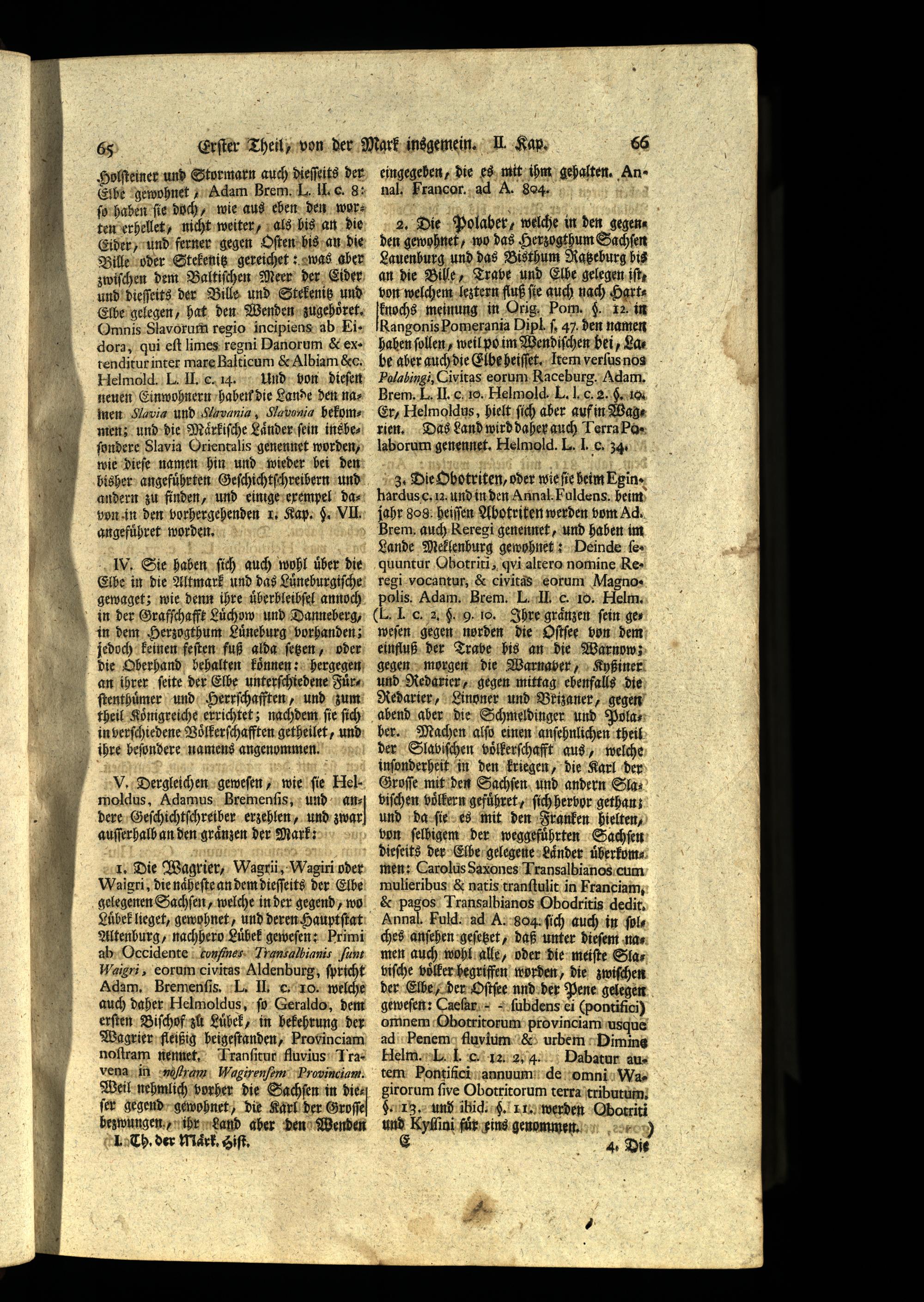 V. Dergleichen geweſen, wie ſie Helmoldus, Adamus Bremenſis, und andere Geſchichtſchreiber erzehlen, und zwar auſſerhalb an den graͤnzen der Mark: