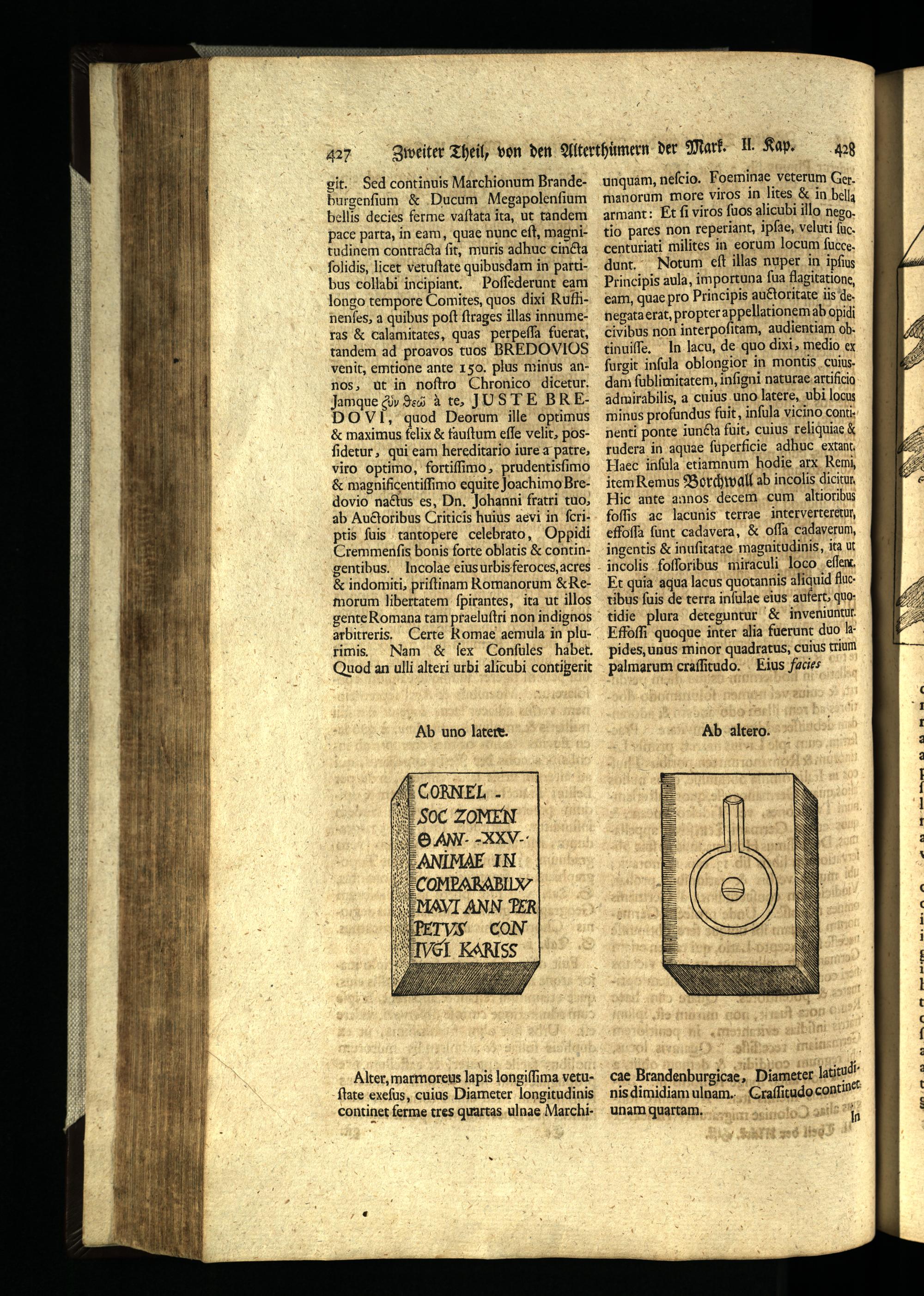 Alter, marmoreus lapis longiſſima vetu- cae Brandenhurgicae, Diameter litt h ſtate exeſus, cuius Diameter longitudinis nis dimidiam ulnam. Craſſitudo continet