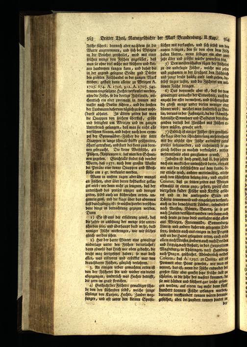 2) Hat der harte Winter eine gewaltige niederlage unter den Fiſchen verurſachet: dann obwohl das Leich wie oben gedacht, die bruht mag ſortgeſetzet haben; ſo war doch alles, was erfroren und erſtikket war von brauchbaren Jiſchen, gänzlich verlohren.
