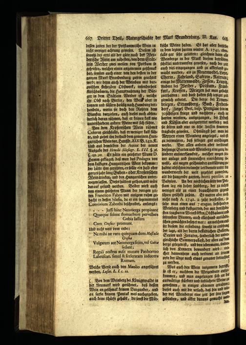 Von dem Weinberg bei Koͤnigswalde in der Neumark wird geruͤhmet, daß deſſen Wein an geſchmak keinem Burgunder, und an farbe keinem Pontak was nachgegeben, auch keine ſchaͤrfe gehabt, die ſonſt die Maͤr