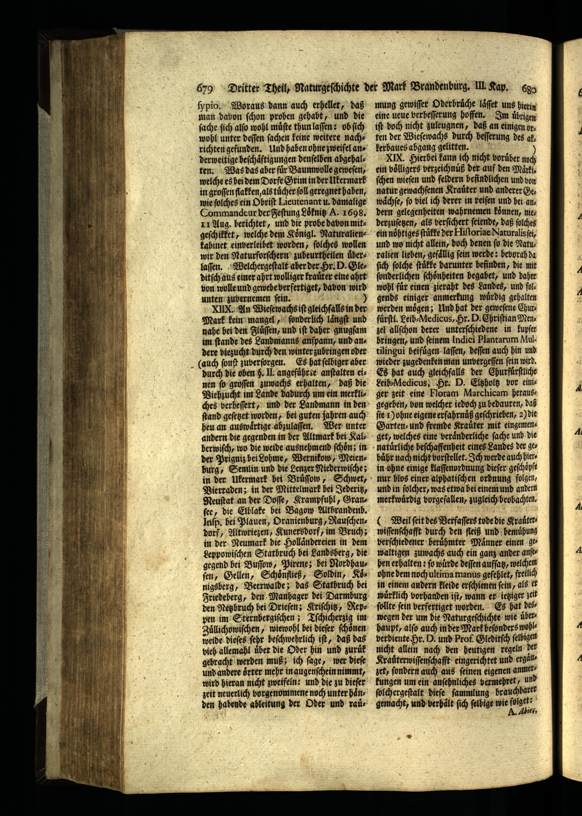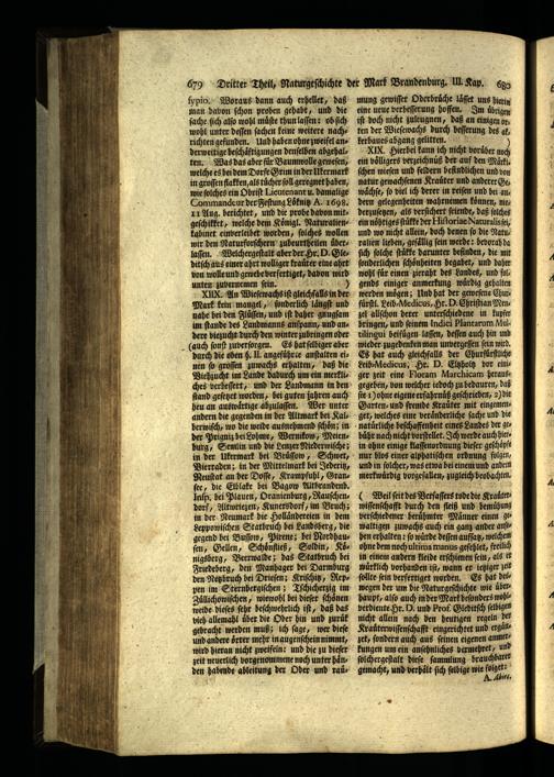 ten der Wieſewachs durch beſſerung des ak. kerbaues abgang gelitten.) XIX. Hierbei kann ich nicht vorüber noch ein voͤlligers verzeichnuͤß der auf den Maͤrki, ſchen wieſen und feldern befindlichen und bon natur gewachſenen Krauͤter und anderer Gewaͤchſe, ſo viel ich derer in reiſen und hei andern gelegenheiten wahrnemen Fönnen, nie derzuſetzen, als verſichert ſeiende, daß ſolches ein noͤhtiges ſtuͤkke der Hiſtoriae Naturalis(ei, und wo nicht allein, doch denen ſo die Naturalien lieben, gefällig fein werde: behyrah da ſich ſolche ſtuͤkke darunter befinden, die mit ſonderlichen ſchoͤnheiten begabet, und daher wohl fuͤr einen zieraht des Landes, und folgends einiger anmerkung wuͤrdig gehalten werden mögen; Und hat der geweſene Chur fürftl. Elb Medicus, Hr. D. Chriſtian Mens zel allſchon derer unterſchiedene in kupfer bringen, und feinen Indici Plantarum Mul. tilingui beifügen laſſen, deſſen auch hin und wieder zugedenken man unvergeſſen ſein wird.