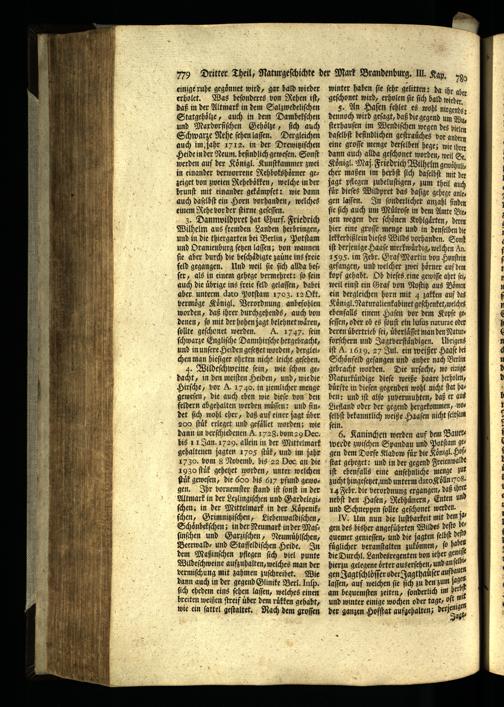 bis 11 Jan. 1729. allein in der Mittelmark gehaltenen jagten 170. ſtuͤk, und im jahr 1730. vom 8 Nobemb. bis 22 Dec an die 1930 ſtuͤ gehetzet worden, unter welchen ſtuͤk geweſen, die 600 his 617 pfund gewogen. Ihr vornemſter ſtand if ſonſt in der Altmark in der Lezlingiſchen und Gardelegiſchen; in der Mittelmark in der Koöͤpenik
