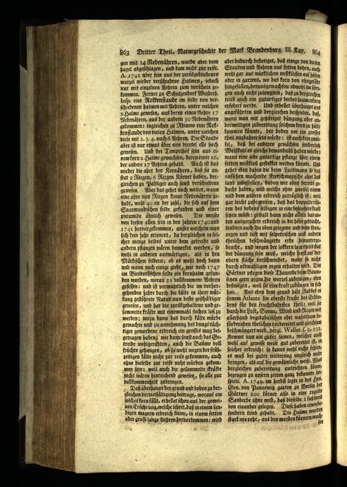 ſich kein jahr erinnert, da dergleichen in ſolcher menge beides unter dem getreide und andern pflanzen waͤren bemerket worden, fü wohl in anderen auswaͤrtigen, als in den Maͤrkiſchen feldern; ob es wohl doch dann und wann noch einige giebt, wie noch 1747 im Biesdorfiſchen felde ein kornhalm gefun