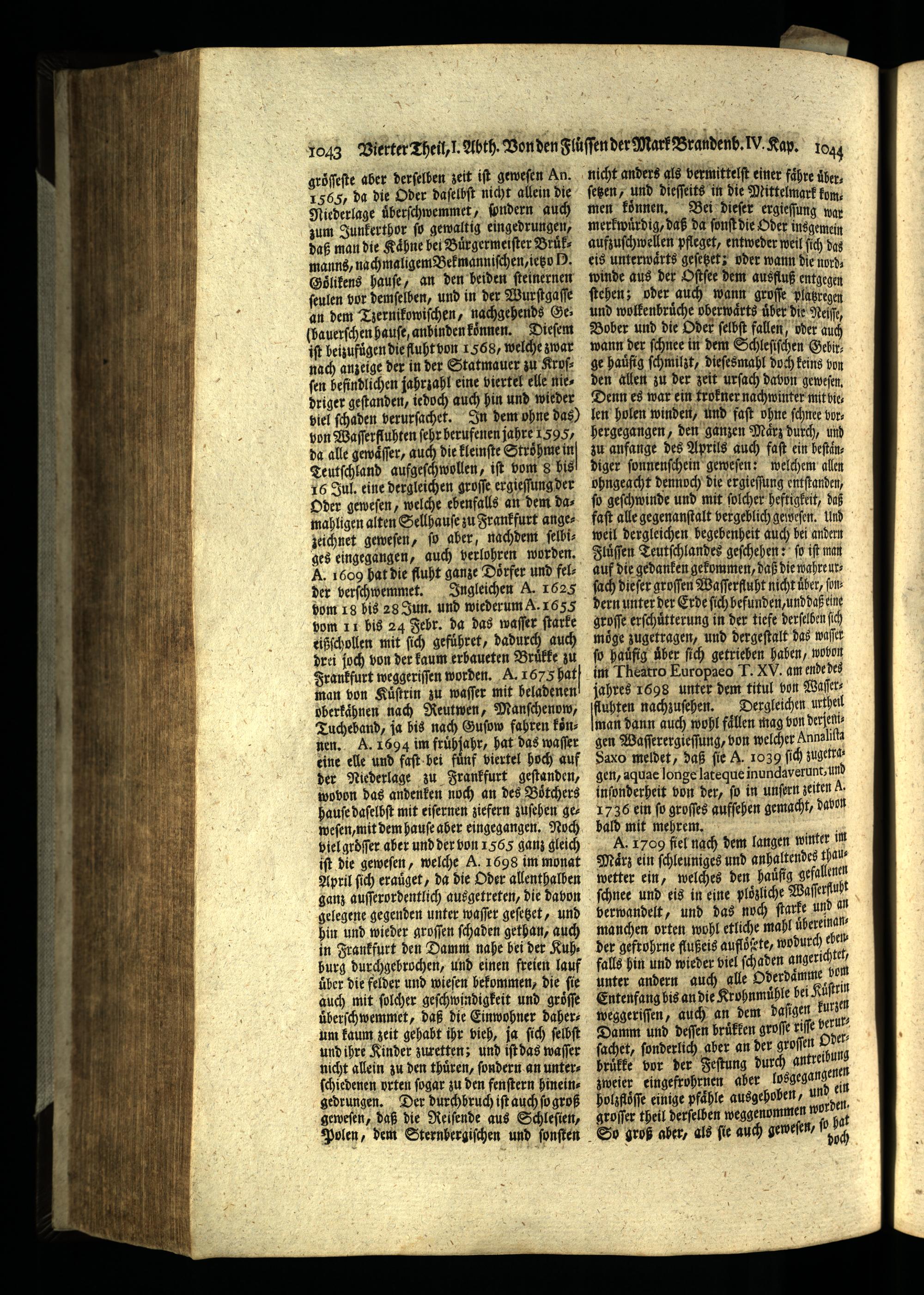 drei joch von der kaum erbaueten Bruͤkke zu ſo haufig uͤber ſich getrieben haben, wobon Frankfurt weggeriſſen worden. A. 1675 hats! im Theatro Europaeo I. XV. am ende des man von Kuüſtrin zu waſſer mit beladenen! jahres 1698 unter dem titul ban aſeeroberkaͤhnen nach Reutwen, Manſchenow, ö. nachzuſehen. Dergleichen urtheil