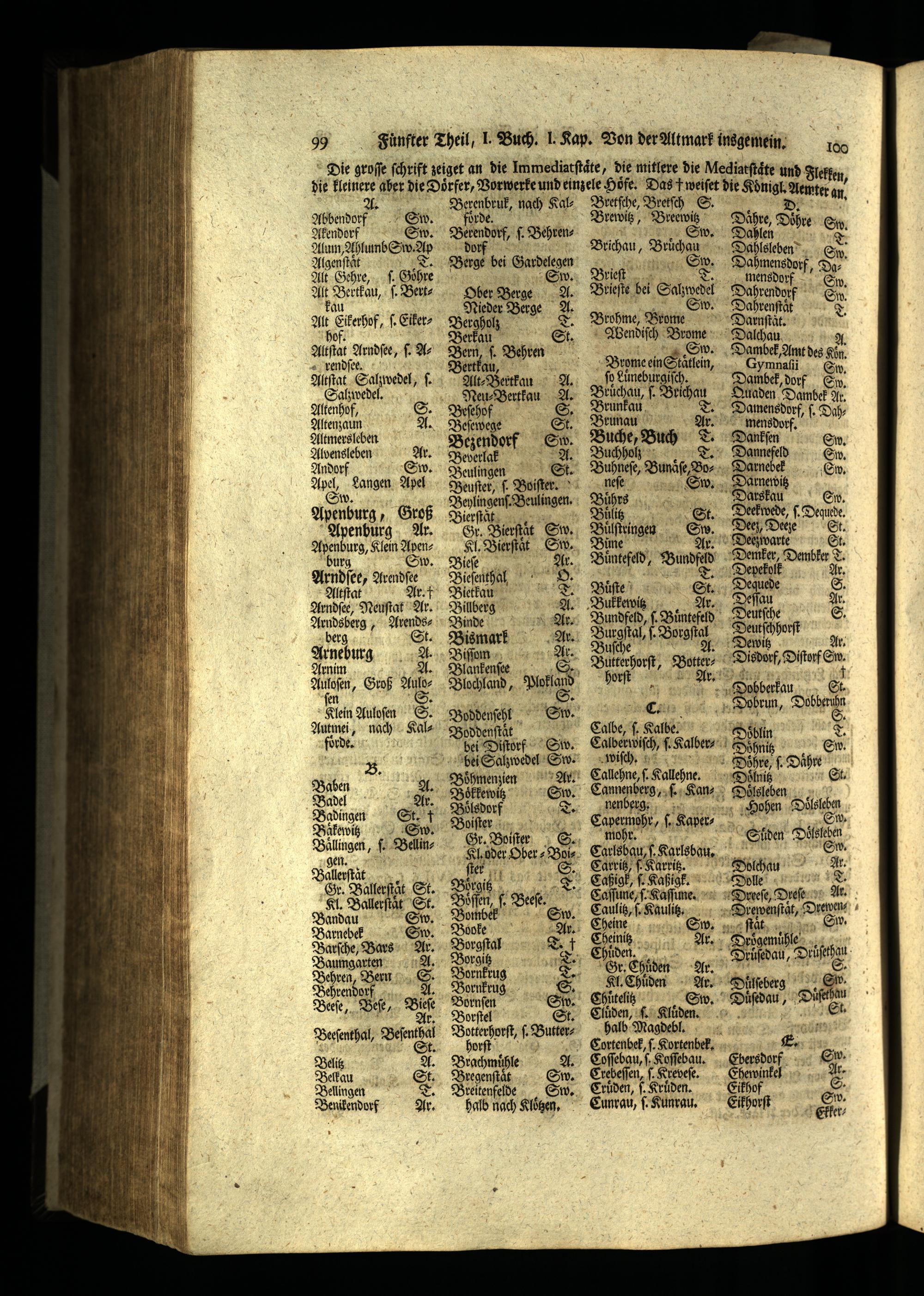Rl. Ballerſtaͤt St. Bandau Sw. Barnebek Sw. Barſche, Bars Ar. Baumgarten A. Behren, Bern S. Behrendorf A. Beeſe, Beſe,.