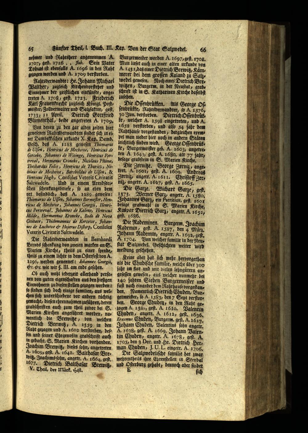 6. Finfter Theil,. Buch. IMI. Kap. Von der Stat Salzwedel. 66