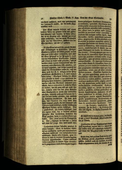 Ottonis briefe beſtaͤtiget, welche beſtaͤtigung Markgraf Ludwig wieder heſtaͤtiget. Der 2 gnadenbrief, den Ludwig beſtaͤtiget, war ſein eigener brief, den er in ſeiner minderjaͤhrigkeit über verſchiedene freiheiten der Stat gegeben, darin er conſuetudinum gedenket. Der z brief betrift die Statgerichte. Der 4 belanget die bede bon 13 hufen und einen fee Cruge. Der brief lautet alſo: