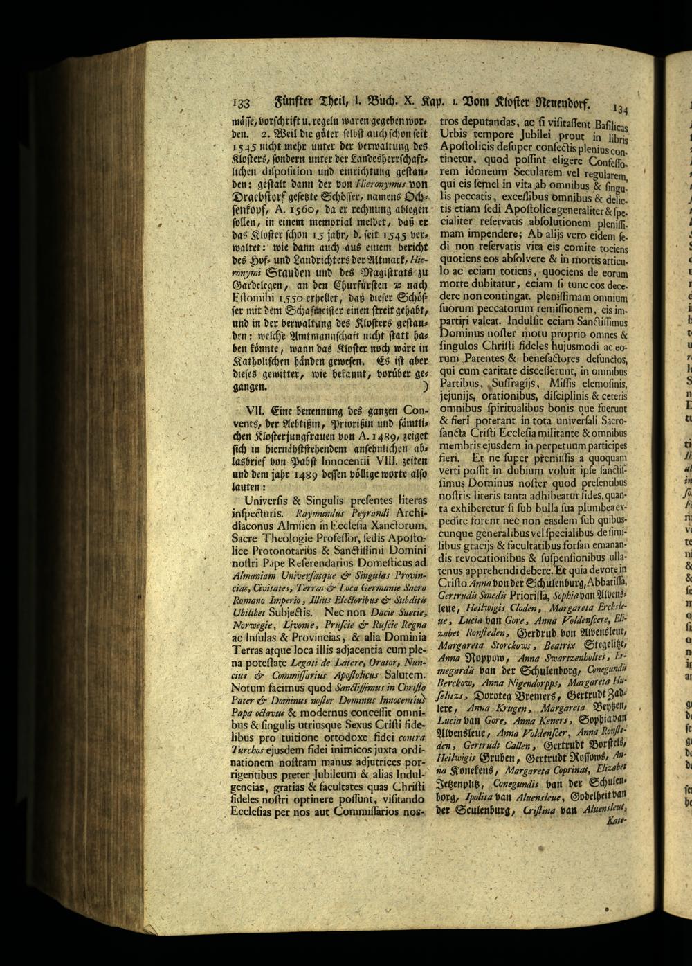 VII. Eine benennung des ganzen Convents, der Aehtißin, Priorißin und ſaͤmtlichen Kloſterjungfrauen von A. 1489, zeiget ſich in hiernaͤhſtſtehendem anſehnlichen ablashrief von Pabſt Innocentii VL zeiten und dem jahr 1489 deſſen völlige worte alſo lauten: