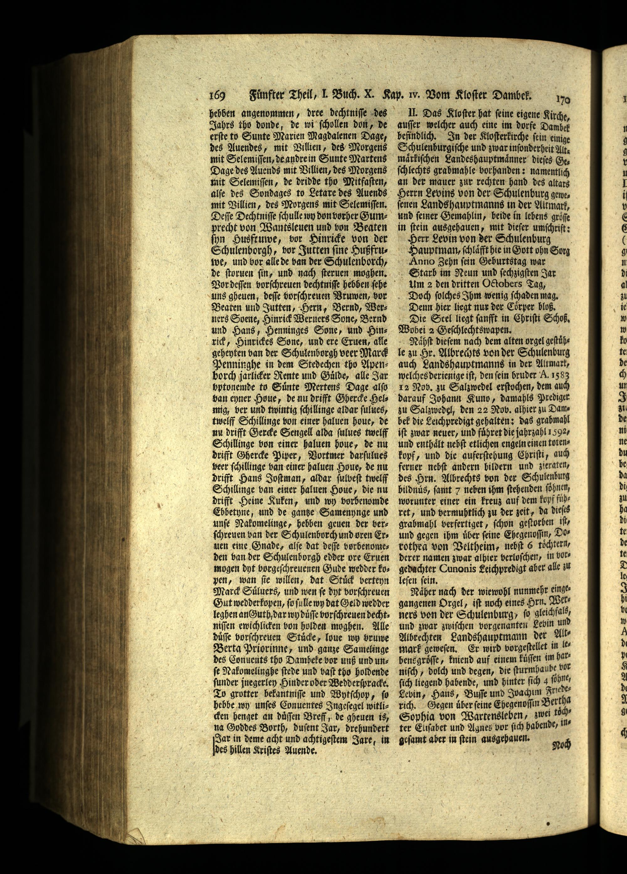 Il. Das Kloſter hat feine eigene Kirche, auſſer welcher auch eine im dorfe Damber befindlich. In der Kloſterkirche fein einige Schulenhurgiſche und zwar inſonderheit Aut.