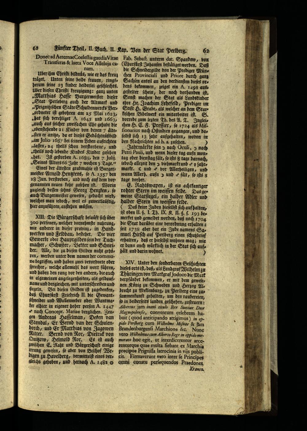 61 Fünfter Theil, Il. Buch. I. Kap. Von der Stat Perlberg. 62