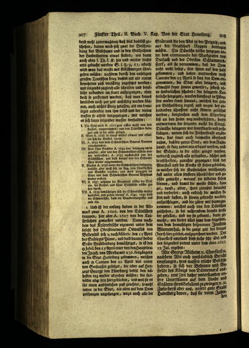 bung des Bisthums und in den Geſchichten der Landesherren etwas ſinden, wie dann auch oben J. Th. J. K. hin und wieder dieſes orts gedacht worden S. ſ. S, 9, 123, iedoch wird man das meiſte mit ſtillſchweigen übers gehen muͤſſen: nachdem durch den unſeligen groſſen Teutſchen krieg dieſem ort als einem bewehrten paß vielfaͤltig zugeſetzet worden: und folgends zugleich alle ſchriften und briefliche urkunden im feuer aufgegangen, oder doch ſo zerſtreuet worden, daß man keines derſelben noch zur zeit anſichtig werden köͤnnen, auch nichts uͤbrig gelaſſen, als ein trauriges andenken von ihm ſelbſt und der vielen treffen fo’ alhier vorgegangen, mit welchen es ſich dann folgender maſſen verhalten: