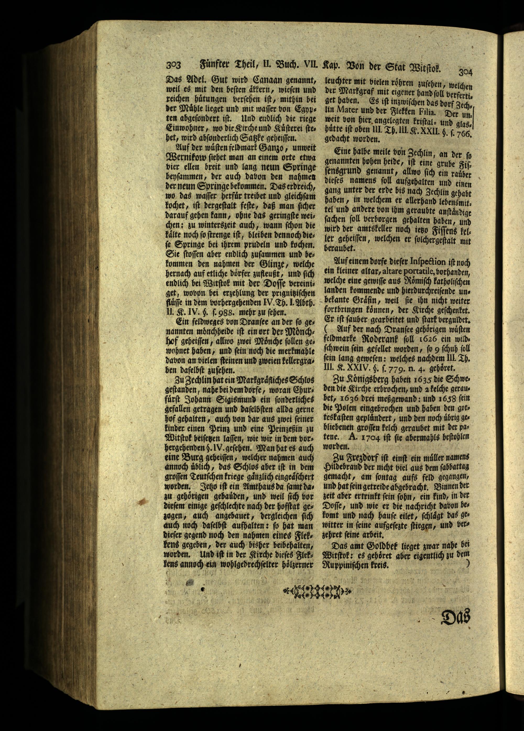 304 leuchter mit vielen roͤhren zuſehen der Markgraf mit eigener ö . erfertis get haben. Es iſt inzwiſchen das dorf Zech lin Mater und der Flekken Filia. Der. weit von hier angelegten kriſtal, und glas, huͤtte iſt oben III Th. Ill K. XXII.§. ſ. 765 gedacht worden.(