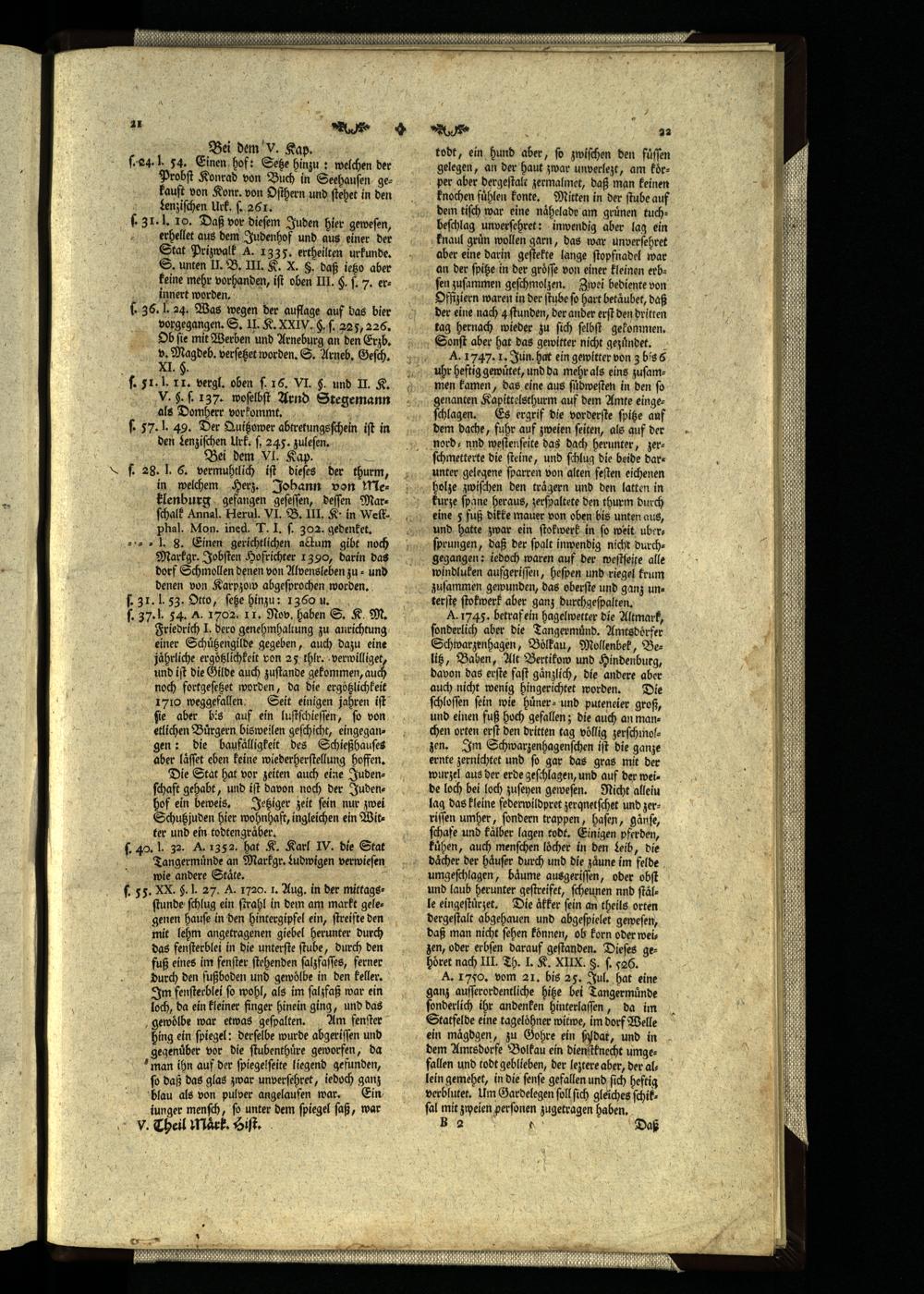 Die Stat hat vor zeiten auch eine Judenſchaft gehabt, und iſt davon noch der Judenhof ein beweis. Jetziger zeit fein. nur zwei Schutz juden hier wohnhaft, ingleichen ein Witter und ein todtengraͤber.