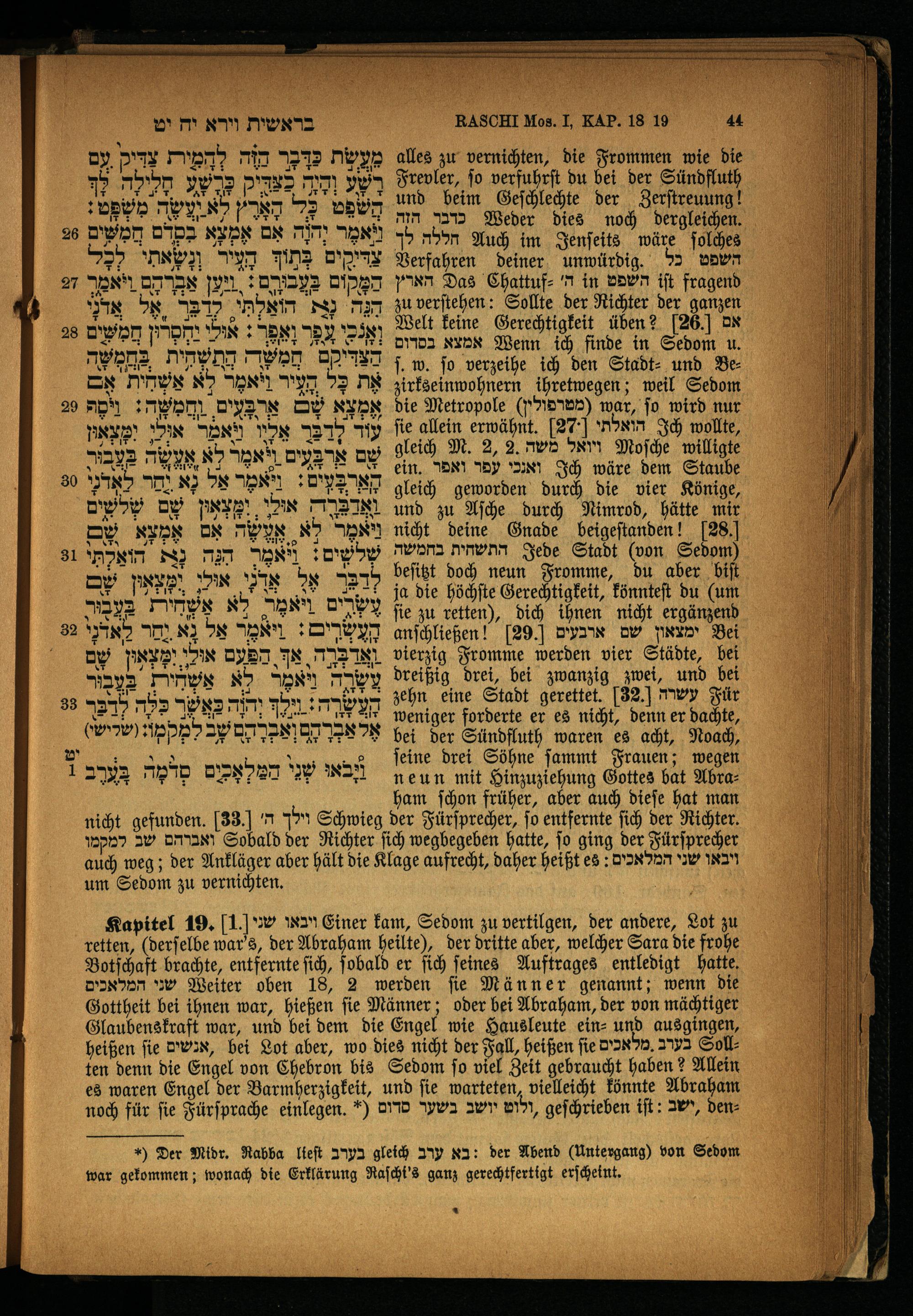 noch für fie Fürſprache einlegen.“) ,ולוט יושב בשער סדום geſchrieben iſt: ,ישב Den: