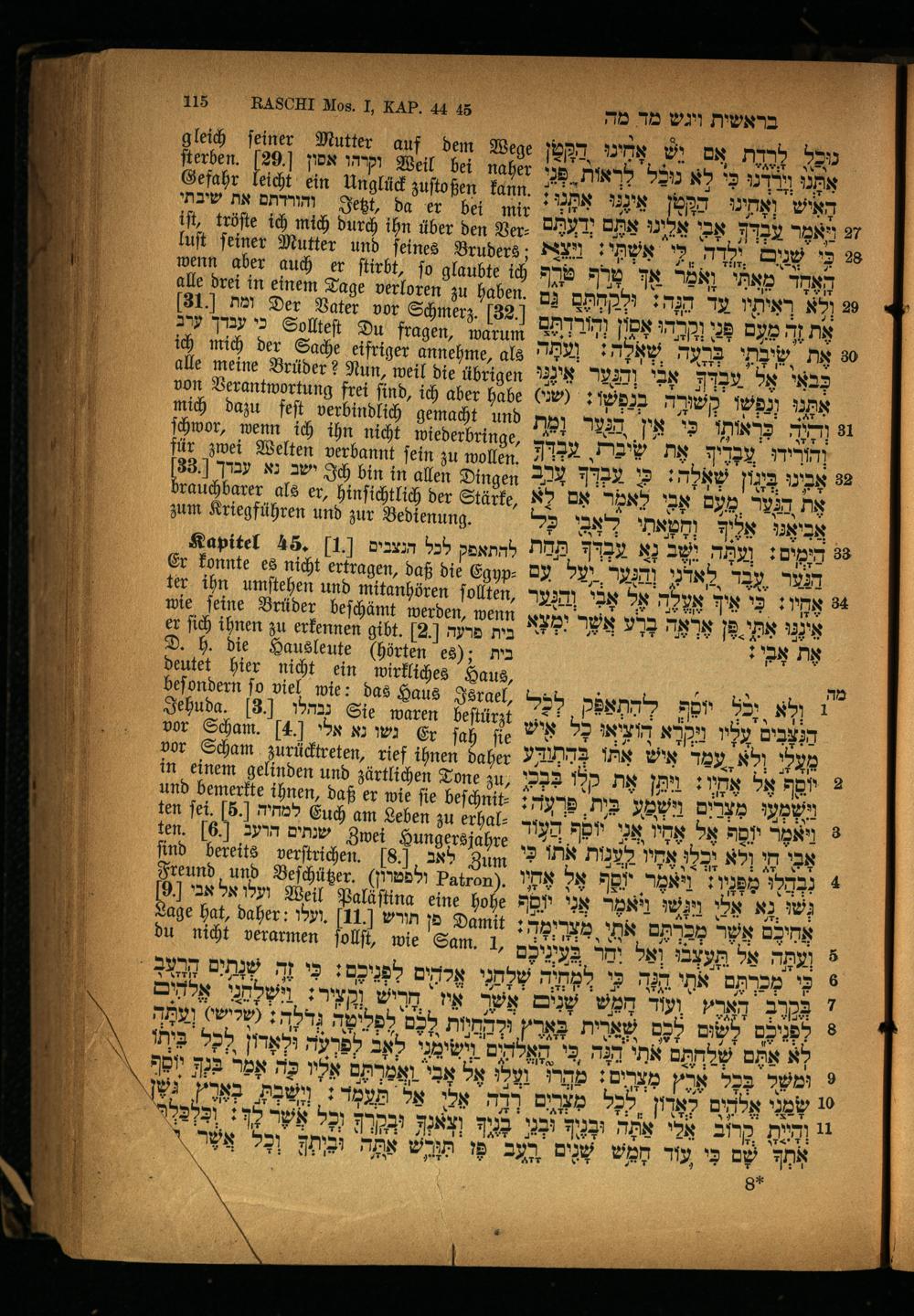 115 RASCHI Mos. I, KAP. 44 45 בראשית ויגש מד מה gleich feiner Mutter auf dem Wege הקטן nä, אם יש re, וכל