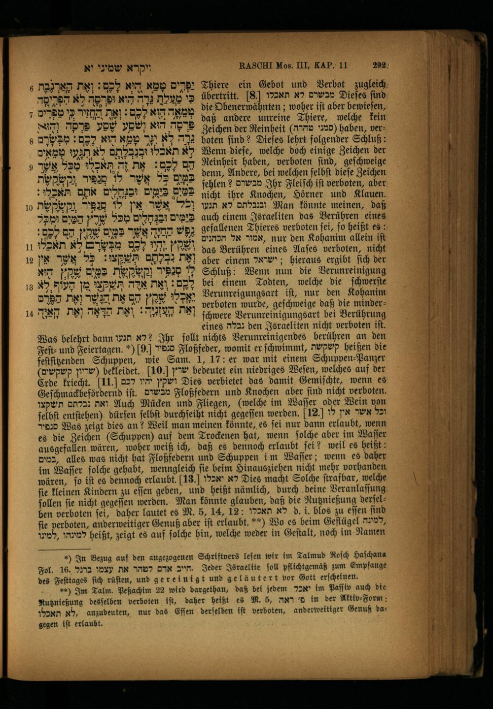 RASCHI Mos. III, KAP. 11 2923 Thiere ein Gebot und Verbot zugleich