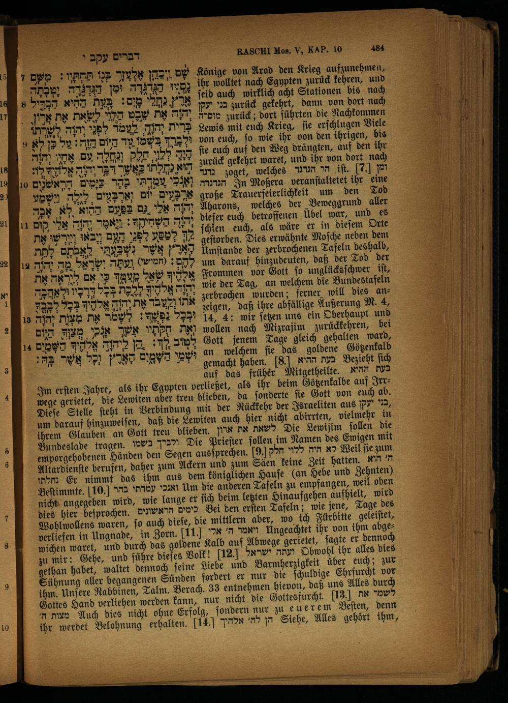 Der Raschi-Kommentar zu den fünf Büchern Moses / vollständig ins Deutsche übersetzt mit beigedrucktem Bibel-Texte in einem Bande von Julius Dessauer, emerit. Rabb., Herausgeber des: "Lexikon der Kernsprüche für Talmud und Midrasch", des "Schlüssel zum Gebetbuch sammt Ritualgesetze der Israeliten ... u.a.m.