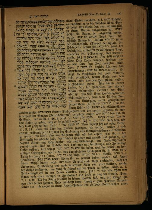 Schönheit) nennet ihn: 85** Haus der Niedrigkeit; anſtatt כל y allſehendes Auge, nennet es: עין קוץ 6 oder Dornenquelle. 4 לא תעשון כן Ihr ſollt nicht an jedem Orte Opfer bringen, ſondern nur an dem Orte, den Gott erwählen wird. Oder לא תעשו כן bezieht ſich auf das ,נתצתם ואבדתם את שמם ihr dürft die Buchſtaben des göttl. Namens nicht verwiſchen, keinen Stein aus dem Altare oder aus dem Heiligthum reißen. R. Jiſchmael meint: Wer könnte daran denken, daß die Israeliten ihre eigenen Altäre niederreißen werden? der Sinn aber iſt: Ihr ſollt ihren Handlungsweiſen nicht nachahmen, denn euere Sünden könnten den Untergang eueres Heiligthumes herbeiführen. 6 לשכנו תדרשו D. i. die Re