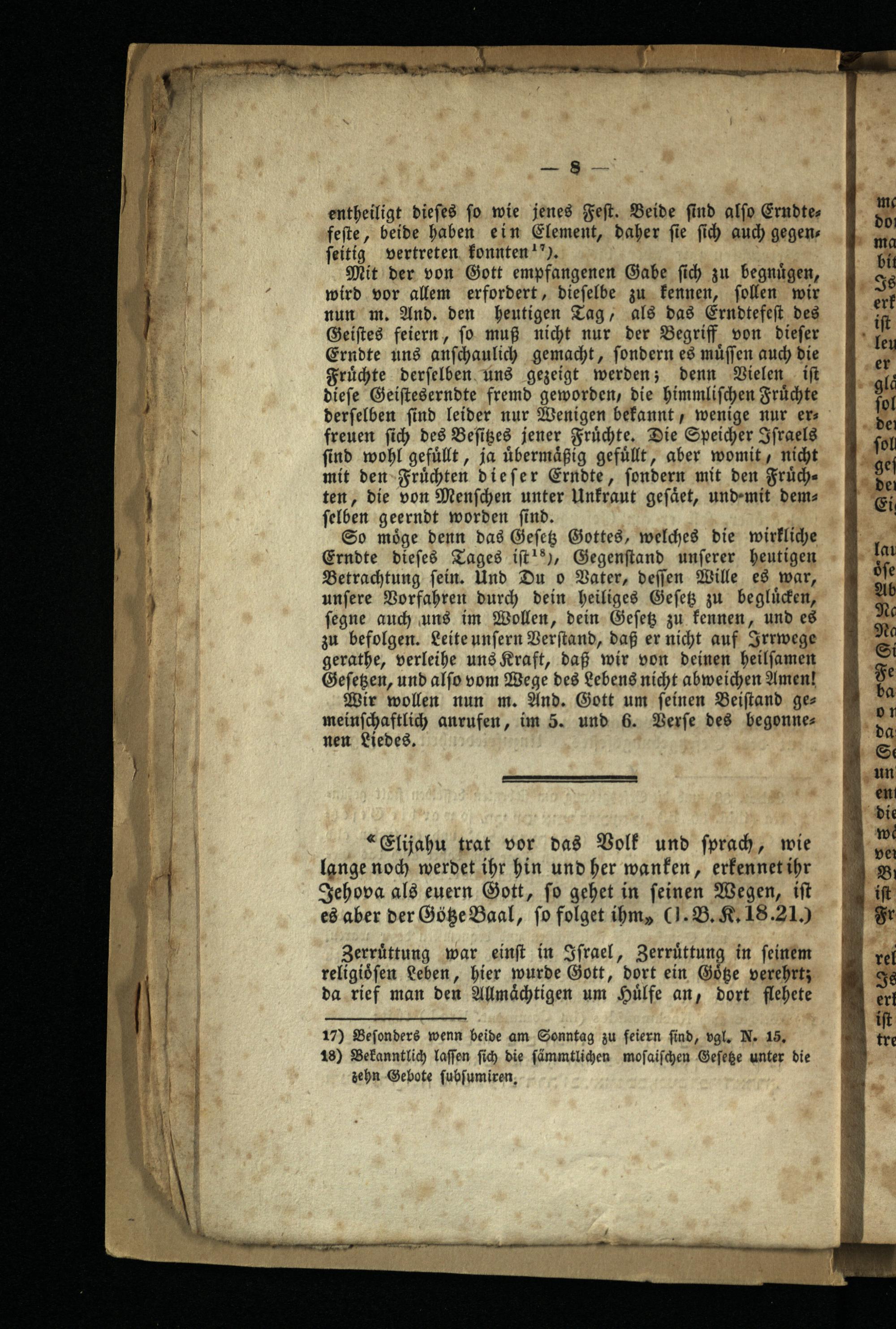 „Elijahu trat vor das Volk und ſprach, wie A lange noch werdet ihr hin und her wanken, erkennet ihr