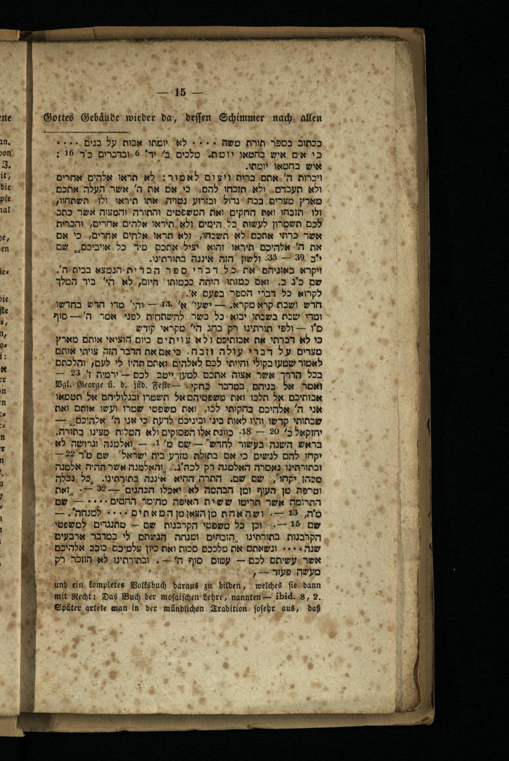 בכל הדרך אשר אצוה אתכם למען ייטב לכם- ירמיה ז' 23 ואמר אל בניהם במדבר בחקי.- Vgl. George ü. b. id. Fefte אבותיכם אל תלכו ואת משפטיהם אל תשמרו ובגלוליהם אל תטמאו אני ה' אלהיכם בחקותי לכו, ואת משפטי שמרו ועשו אותם ואת שבתותי קדשו והיו לאות ביני וביניכם לדעת כי אני ה' אלהיכם- יחזקאל כ' 20 – 18. כוונת אלו הפסוקים ולא המלות מצינו בתורה. בראש השנה בעשור לחדש" – שם מ' 1.- ואלמנה וגרושה לא יקחו להם לנשים כי אם בתולת מזרע בית ישראל” שם מ"ר 22- ובתורתינו נאסרה האלמנה רק לכה"ג. והאלמנה אשר תהיה אלמנה מכהן יקחו, שם שם. התרה ההיא איננה בתורתינו. כל נבלה