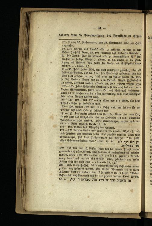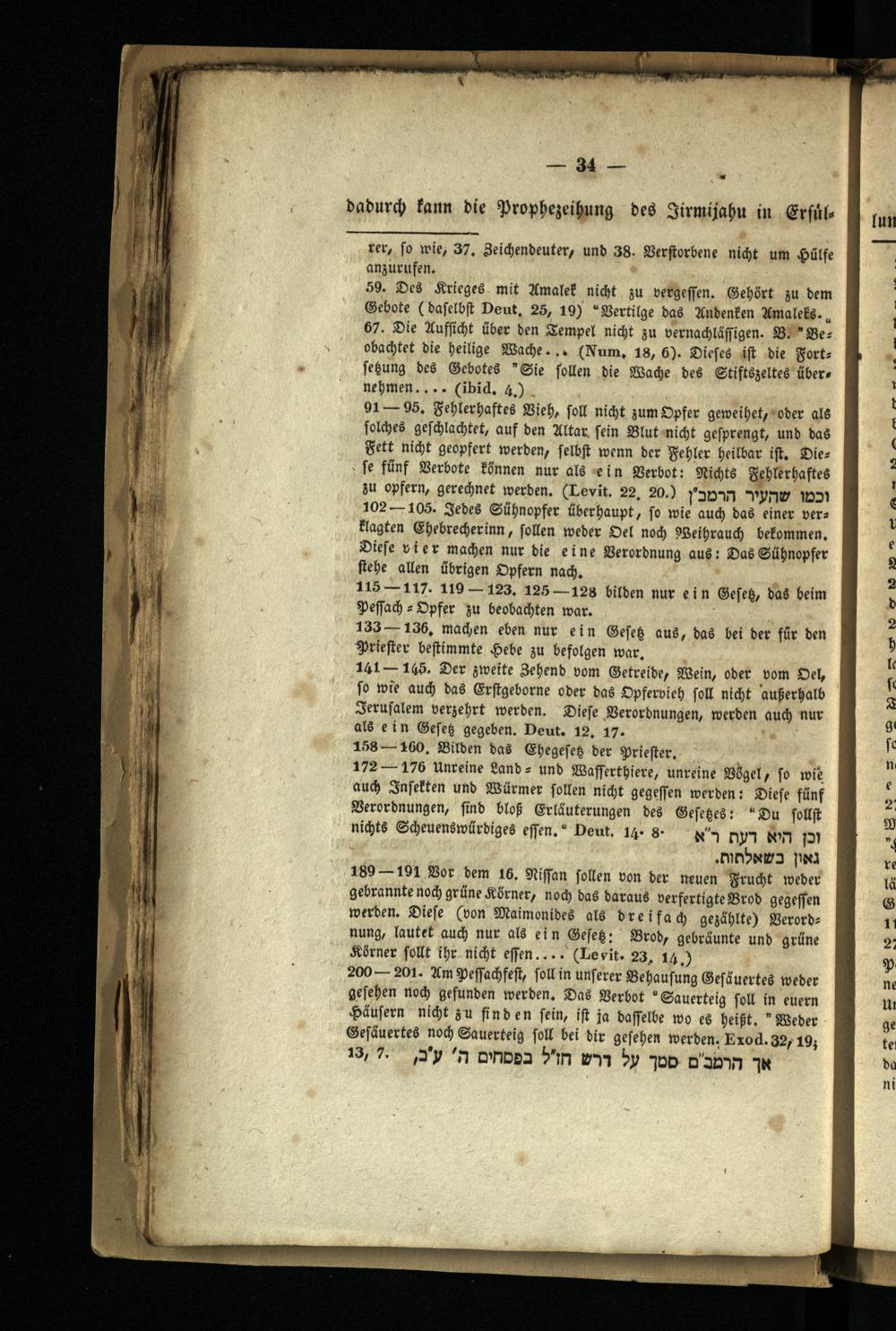 189 191 Vor dem 16. Nissan sollen von der neuen Frucht weder gebrannte noch grüne Körner, noch das daraus verfertigte Brod gegeffen werden. Diese( von Maimonides als dreifach gezählte) Verordnung, lautet auch nur als ein Gesek: Brod, gebräunte und grüne Körner sollt ihr nicht effen....( Levit. 23, 14.)