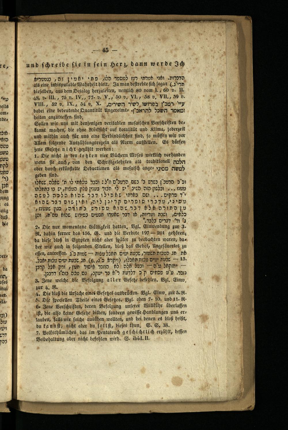 Sollen wir uns mit denjenigen veritablen mosaischen Vorschriften be= kannt machen, die ohne Rücksicht auf Localität und Klima, jederzeit und mithin auch für uns eine Verbindlichkeit sind, so müssen wir vor Allem folgende Auszählungsregeln als Norm aufstellen. Es dürfen jene Gesetze nicht gezählt werden: