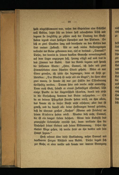 Hoch erfreut über dieſe Verkündung, nahm Samuel mit dankbarem Herzen Abſchied vom Rabbi. Dieſer begab ſich zur Ruhe, er aber wollte und konnte vor innerer Bewegung
