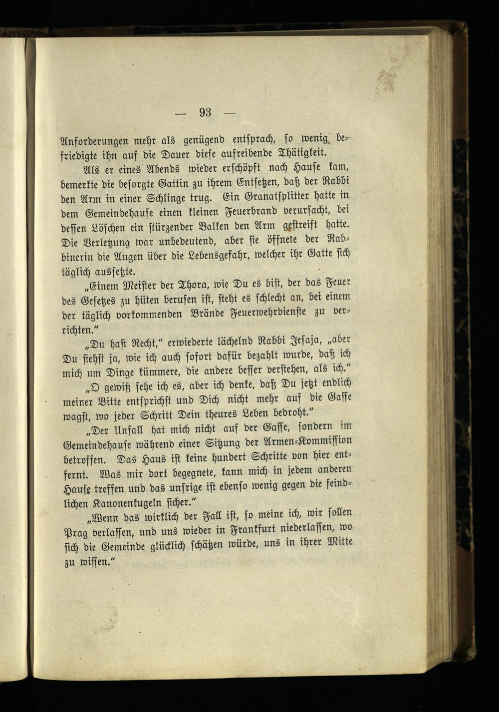 „Wenn das wirklich der Fall ist, so meine ich, wir sollen Prag verlassen, und uns wieder in Frankfurt niederlasten, wo sich die Gemeinde glücklich schätzen würde, uns in ihrer Mitte zu wissen."