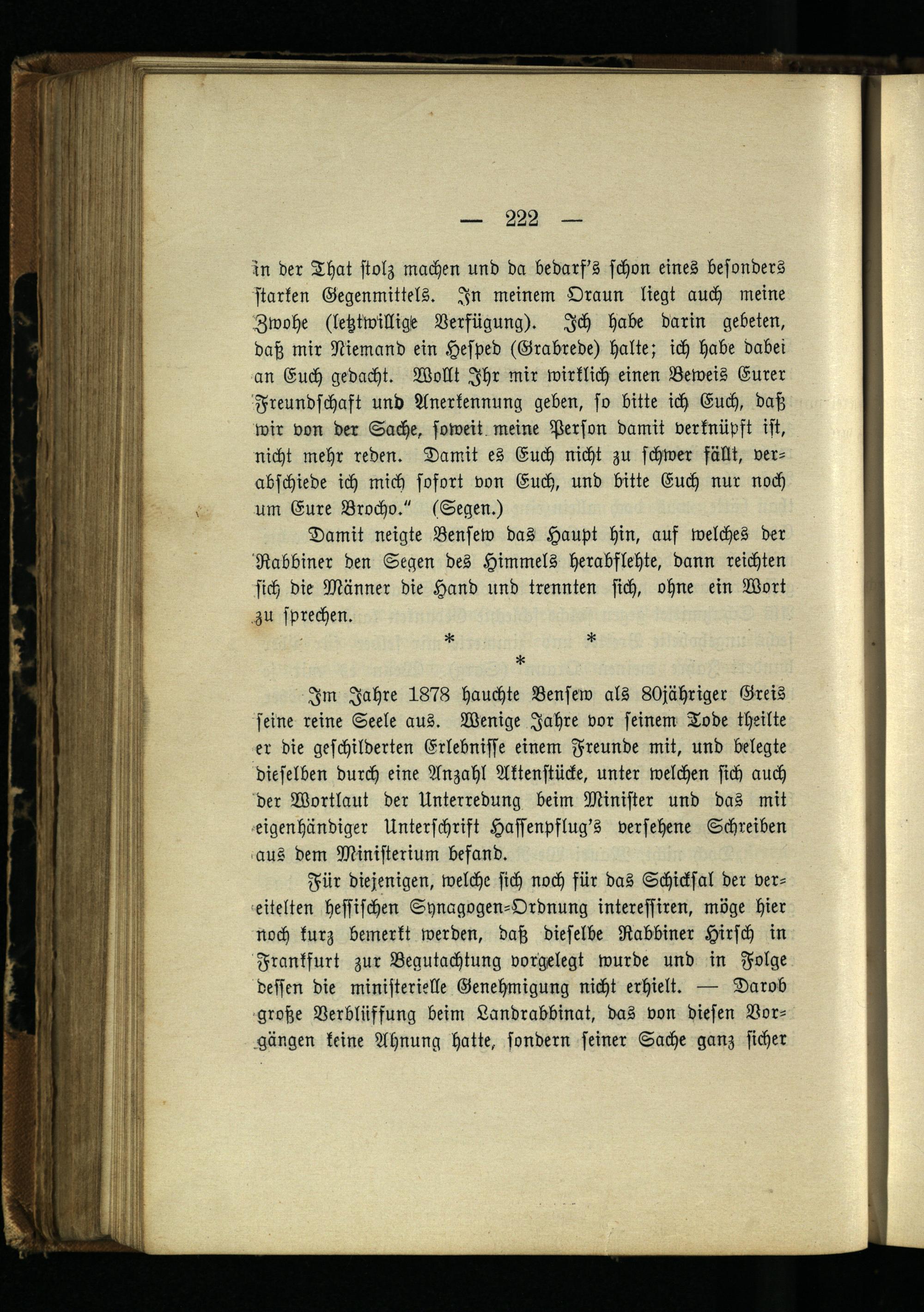 Damit neigte Bensew das Haupt hin, auf welches der Rabbiner den Segen des Himmels herabflehte, dann reichten sich die Männer die Hand und trennten sich, ohne ein Wort zu sprechen.