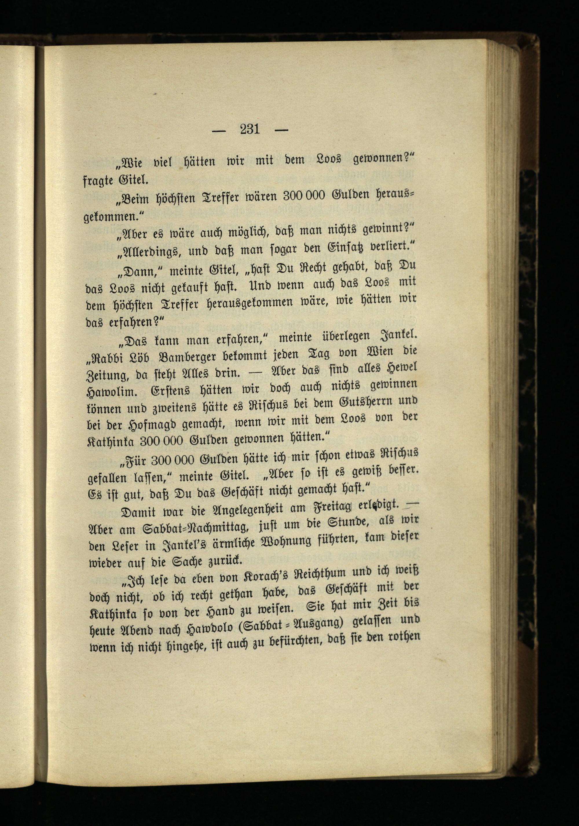 „Wie viel hätten wir mit dem Loos gewonnen?" fragte Gitel.