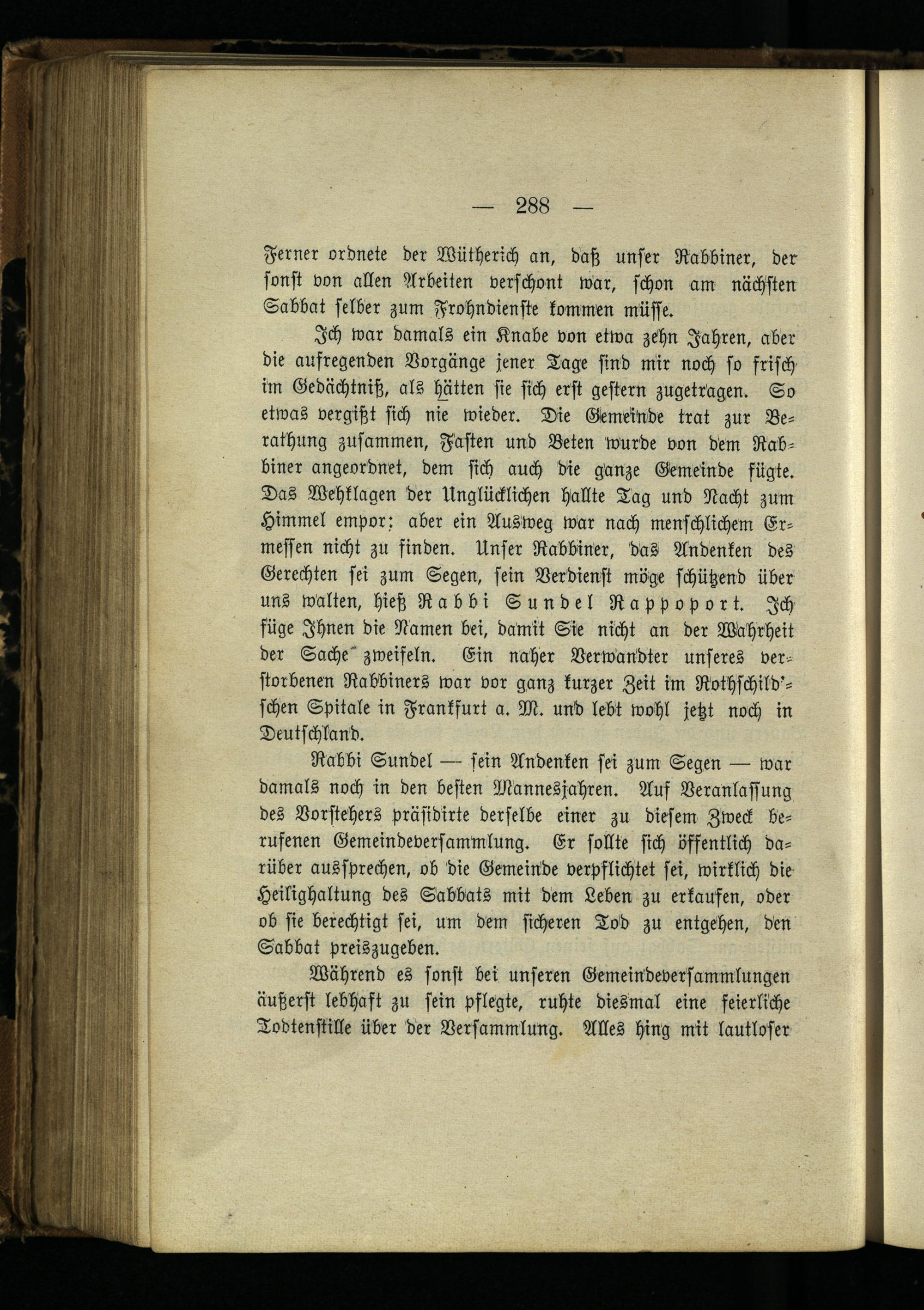 Ferner ordnete der Wütherich an, daß unser Rabbiner, der sonst von allen Arbeiten verschont war, schon am nächsten Sabbat selber zum Frohndienste kommen muffe.