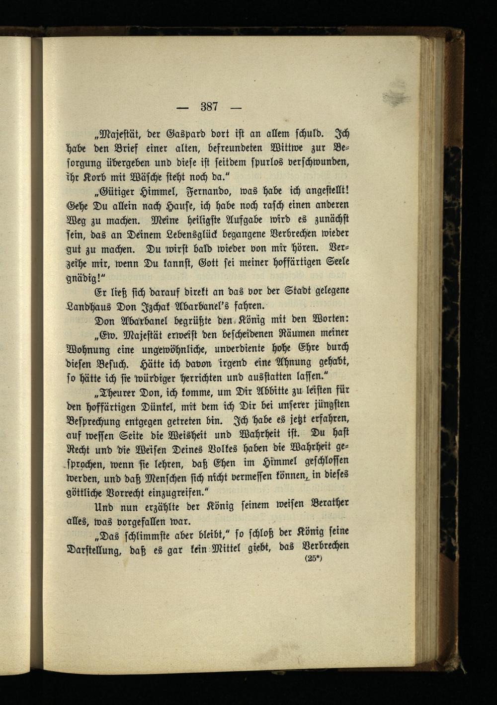 „Theurer Don, ich komme, um Dir Abbitte zu leisten für den hoffärtigen Dünkel, mit dem ich Dir bei unserer jüngsten Besprechung entgegen getreten bin. Ich habe es jetzt erfahren, auf wessen Seite die Weisheit und Wahrheit ist. Du hast Recht und die Weisen Deines Volkes haben die Wahrheit gesprochen, wenn sie lehren, daß Ehen im Hitnmel geschlossen werden, und daß Menschen sich nicht vermessen können^ in dieses göttliche Vorrecht einzugreifen."