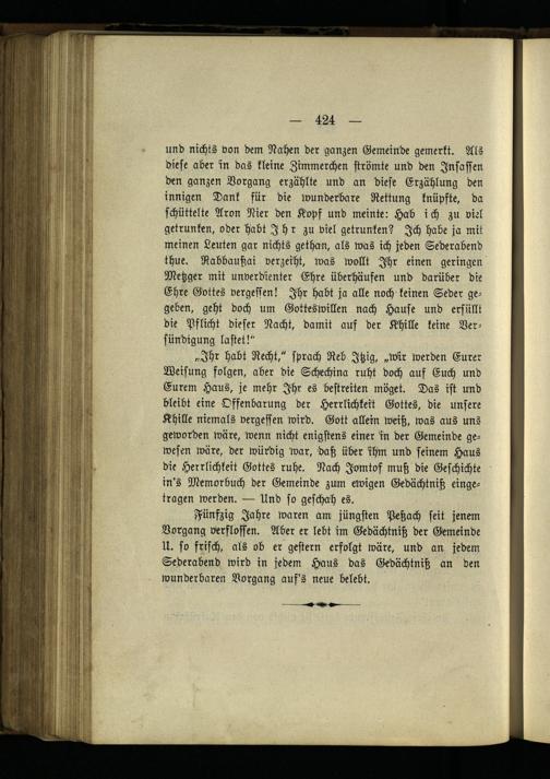 Fünfzig Jahre waren am jüngsten Peßach seit jenem Vorgang verflossen. Aber er lebt im Gedächtniß der Gemeinde U. so frisch, als ob er gestern erfolgt wäre, und an jedem Sederabend wird in jedem Haus das Gedächtniß an den wunderbaren Vorgang auf's neue belebt.