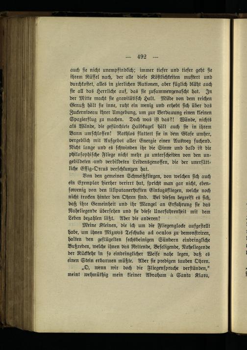 „O, wenn wir doch die Fliegensprache verständen," meint wehmiithig mein kleiner Abraham st Santa Klara ,