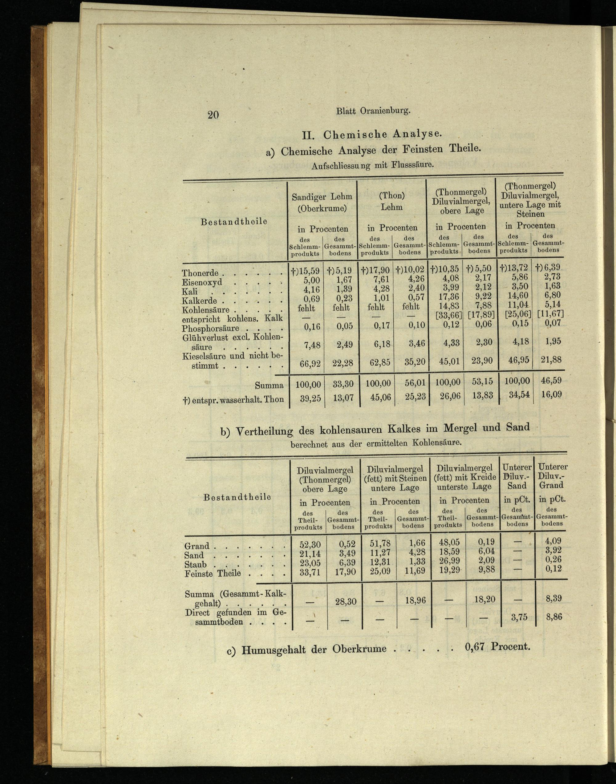 b) Vertheilung des kohlensauren Kalkes im Mergel und Sand berechnet aus der ermittelten Kohlensäure, ALL