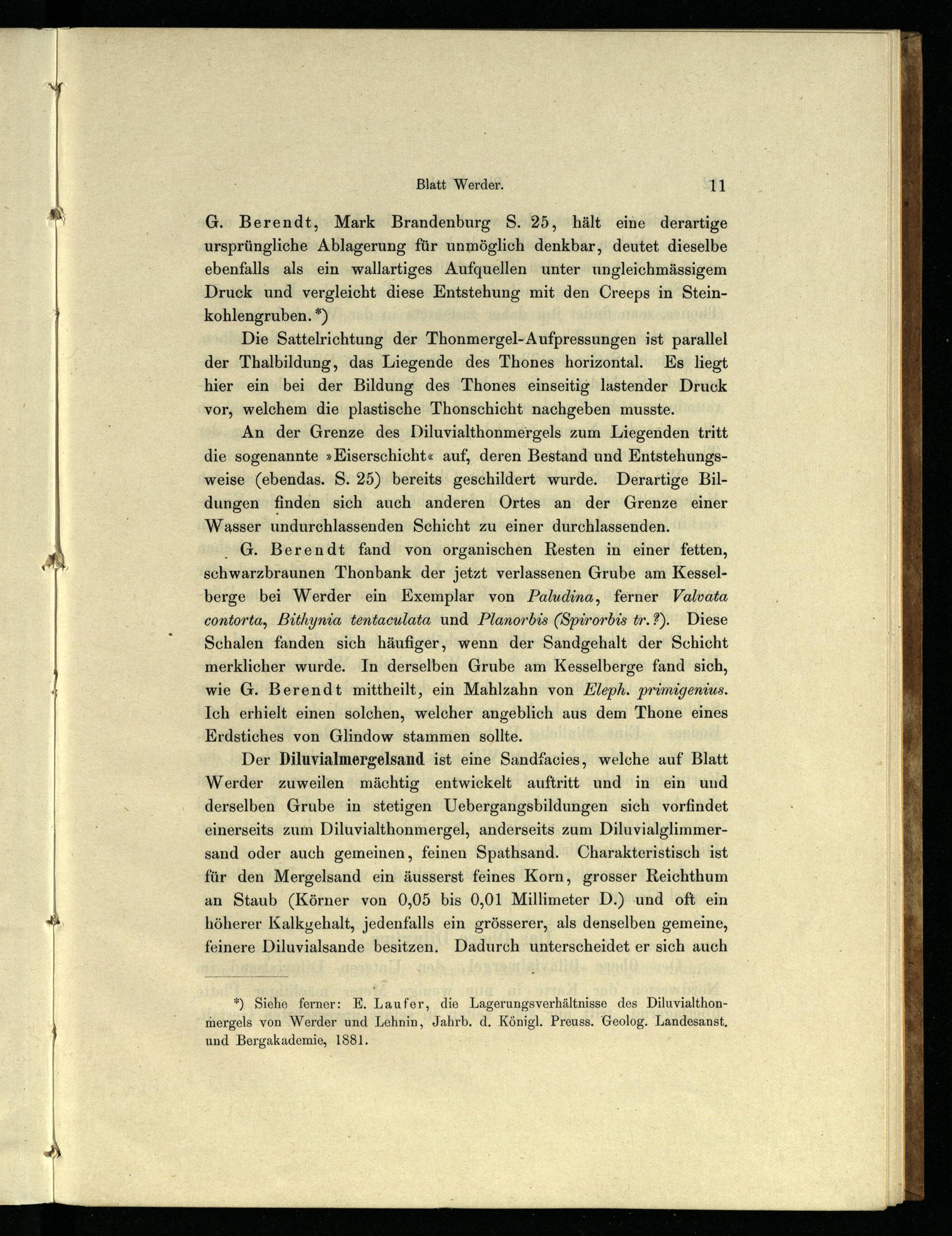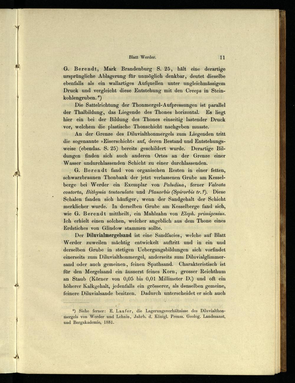 G. Berendt, Mark Brandenburg S. 25, hält eine derartige ursprüngliche Ablagerung für unmöglich denkbar, deutet dieselbe ebenfalls als ein wallartiges Aufquellen unter ungleichmässigem Druck und vergleicht diese Entstehung mit den Creeps in Steinkohlengruben.*)