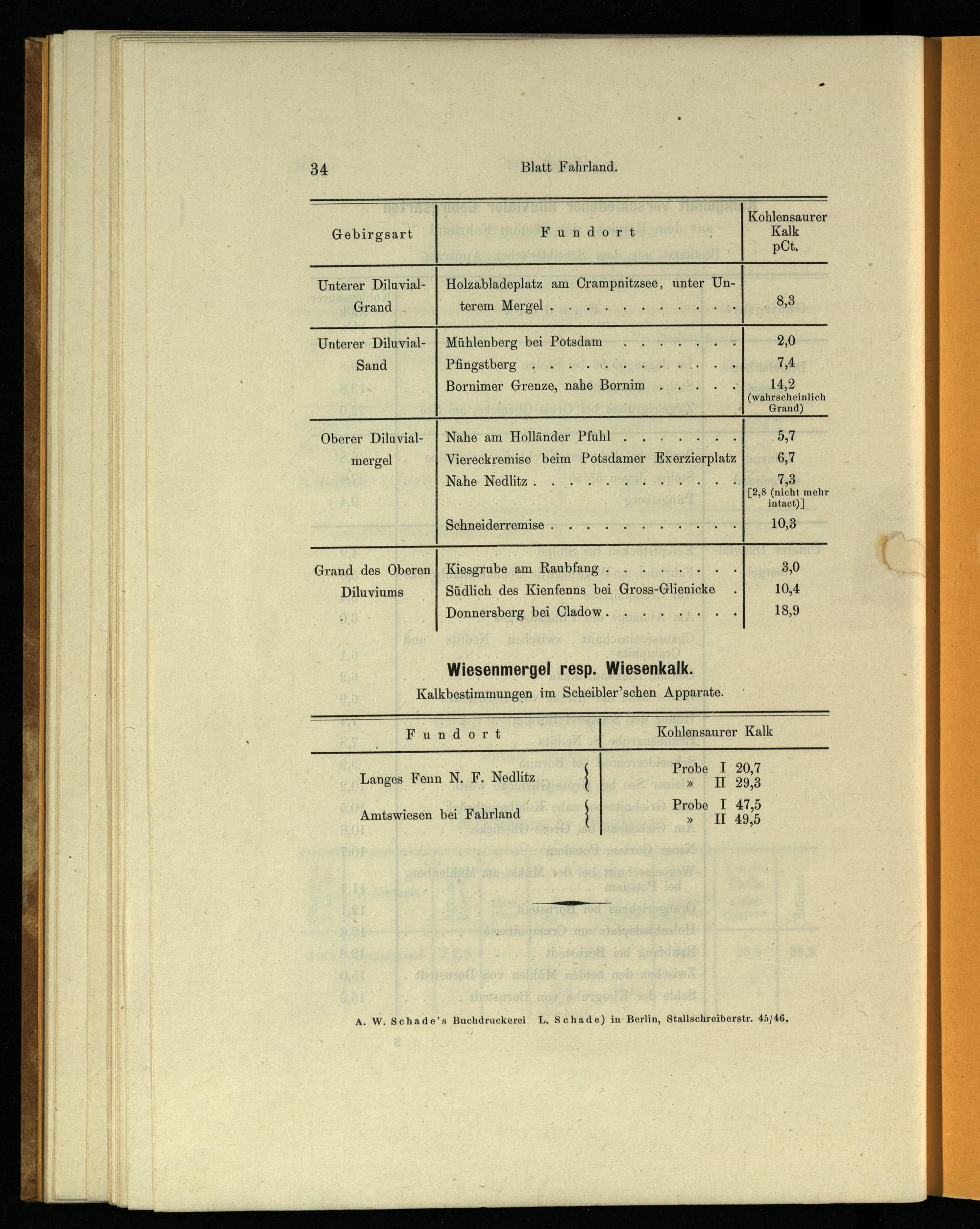 Grand des Oberen| Kiesgrube am Raubfang........+- 3,0 Diluviums Südlich des Kienfenns bei Gross-Glienicke. 10,4 Donnersberg, bei Cladow,.. 41x u}.+ 18,9