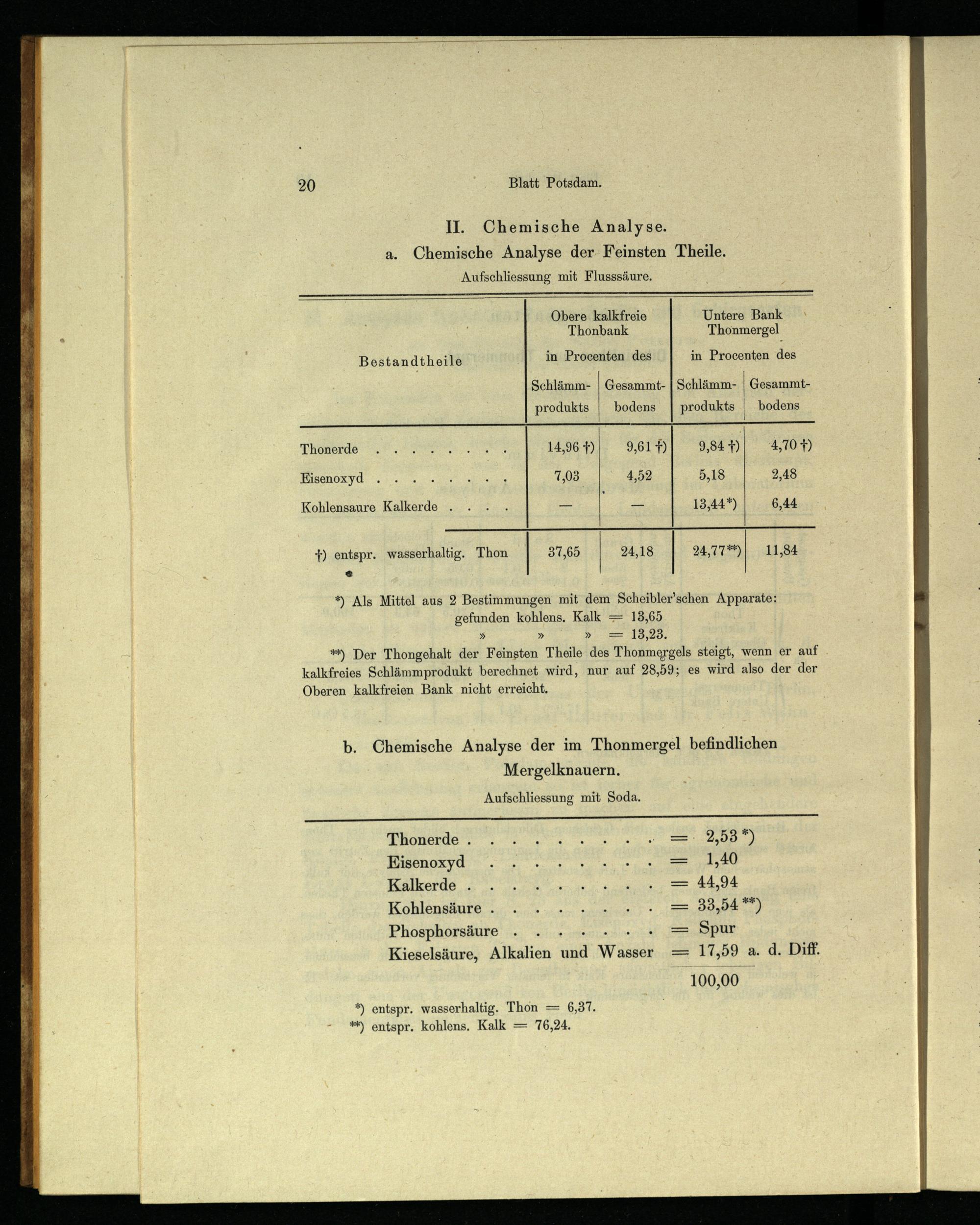 **) Der Thongehalt der Feinsten Theile des Thonmqrgels steigt, wenn er auf kalkfreies Schlämmprodukt berechnet wird, nur auf 28,59; es wird also der der Oberen kalkfreien Bank nicht erreicht.
