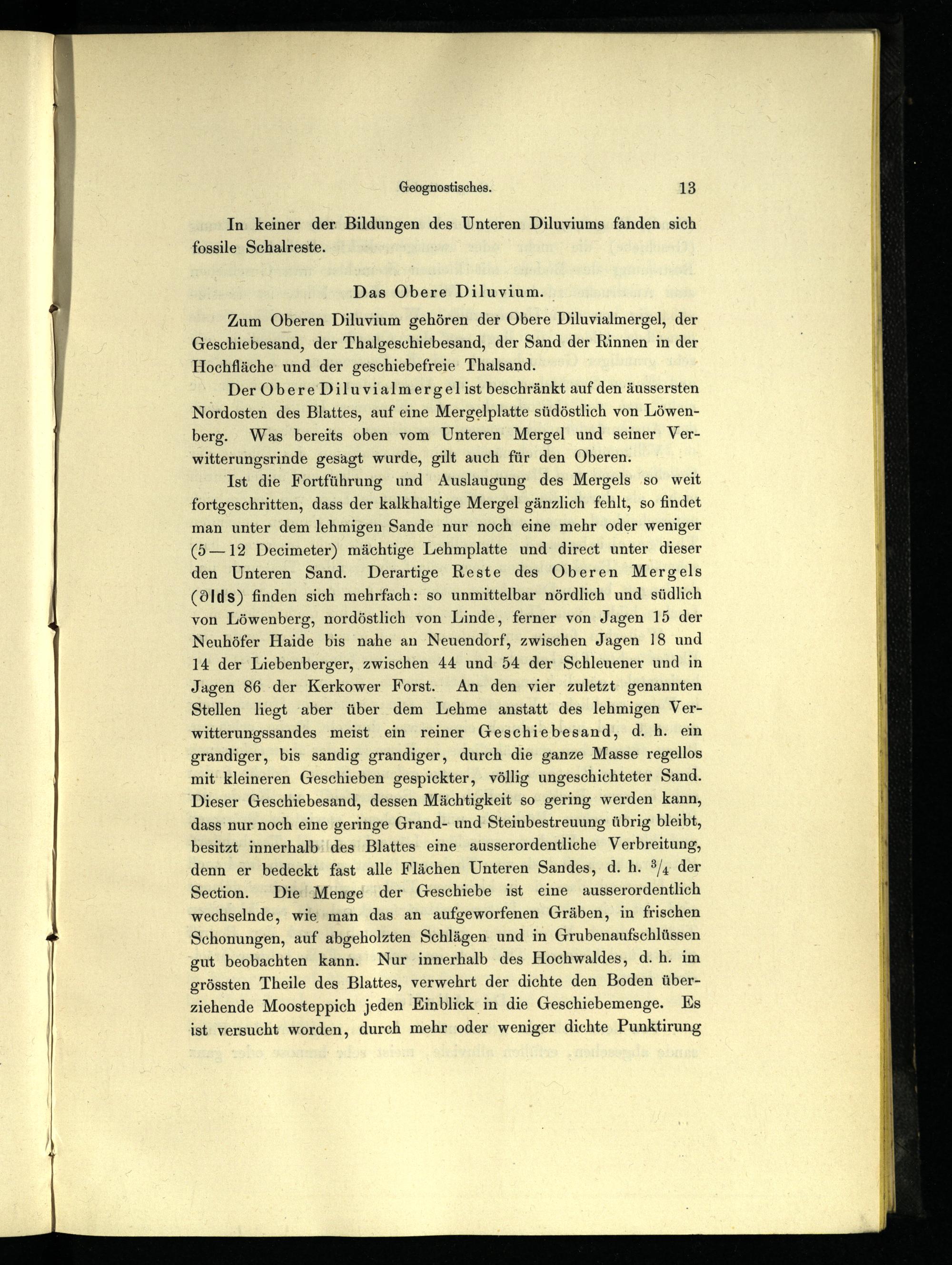 Zum Oberen Diluvium gehören der Obere Diluvialmergel, der Geschiebesand, der Thalgeschiebesand, der Sand der Rinnen in der Hochfläche: und der geschiebefreie Thalsand.
