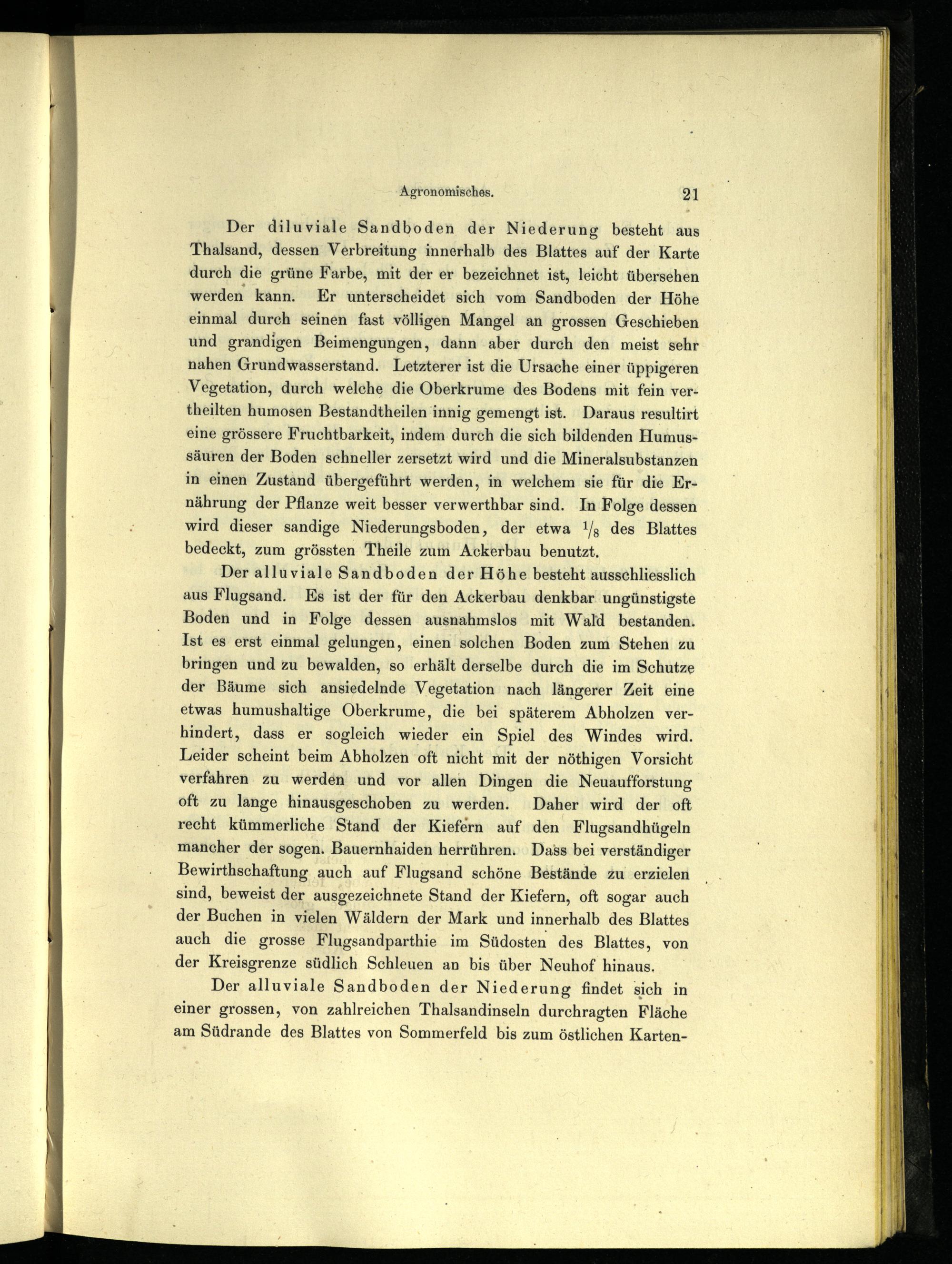 Der alluviale Sandboden der Niederung findet sich in einer grossen, von zahlreichen Thalsandinseln durchragten Fläche am Südrande des Blattes von Sommerfeld bis zum östlichen Karten