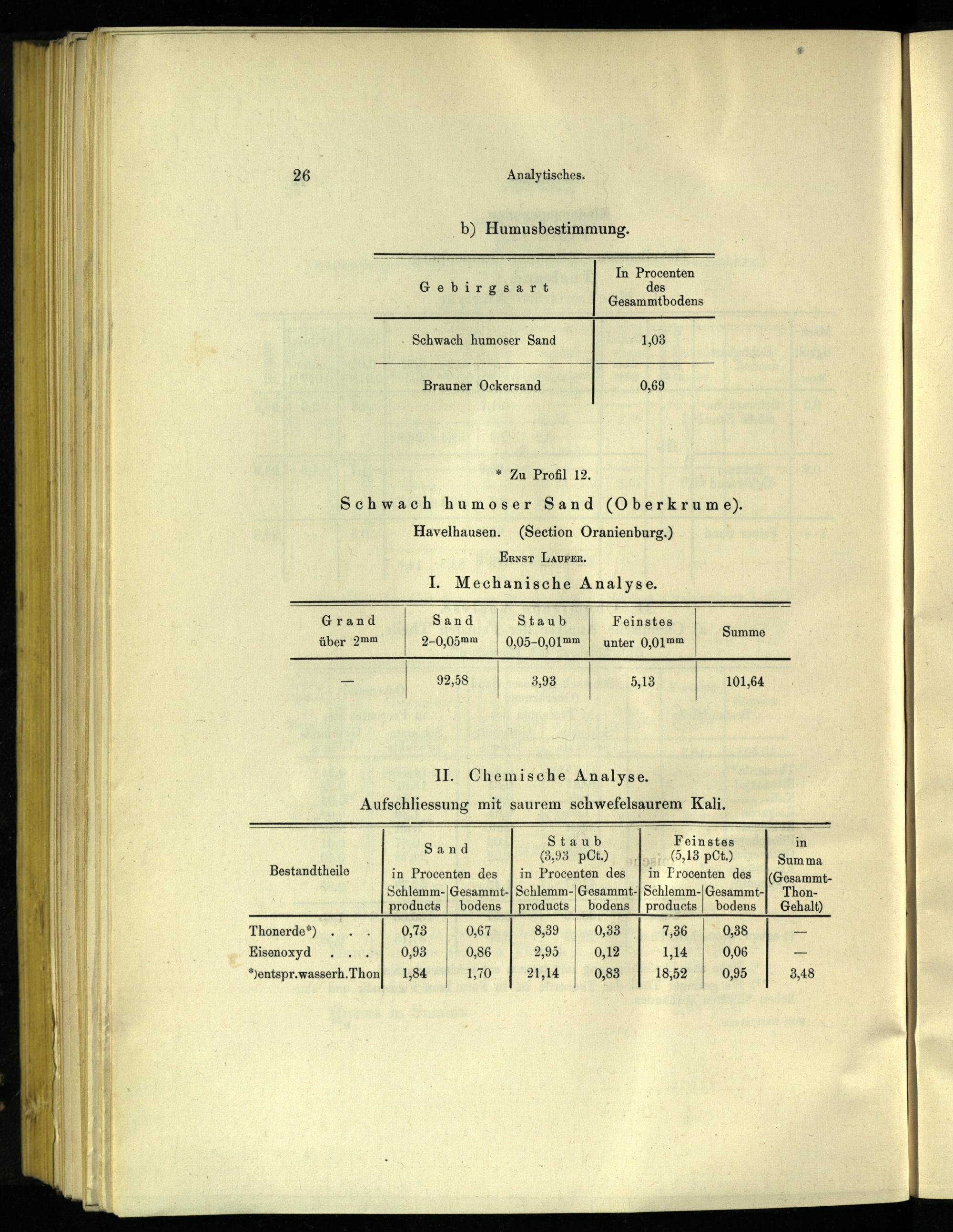 * Zu Profil 12. Schwach humoser Sand(Oberkrume). Havelhausen.(Section Oranienburg.) Erst Laurer.