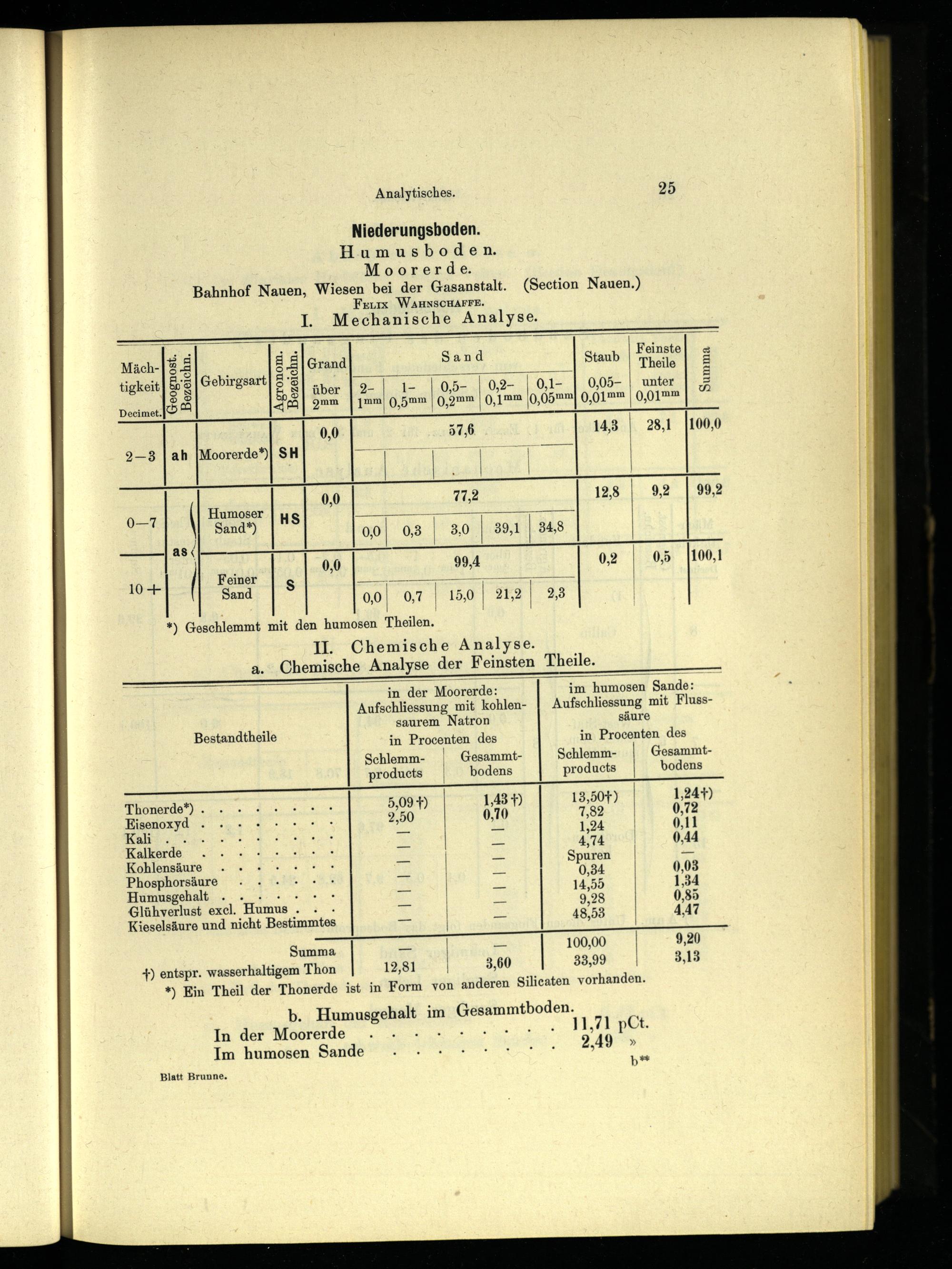 *) Geschlemmt mit den humosen Theilen.