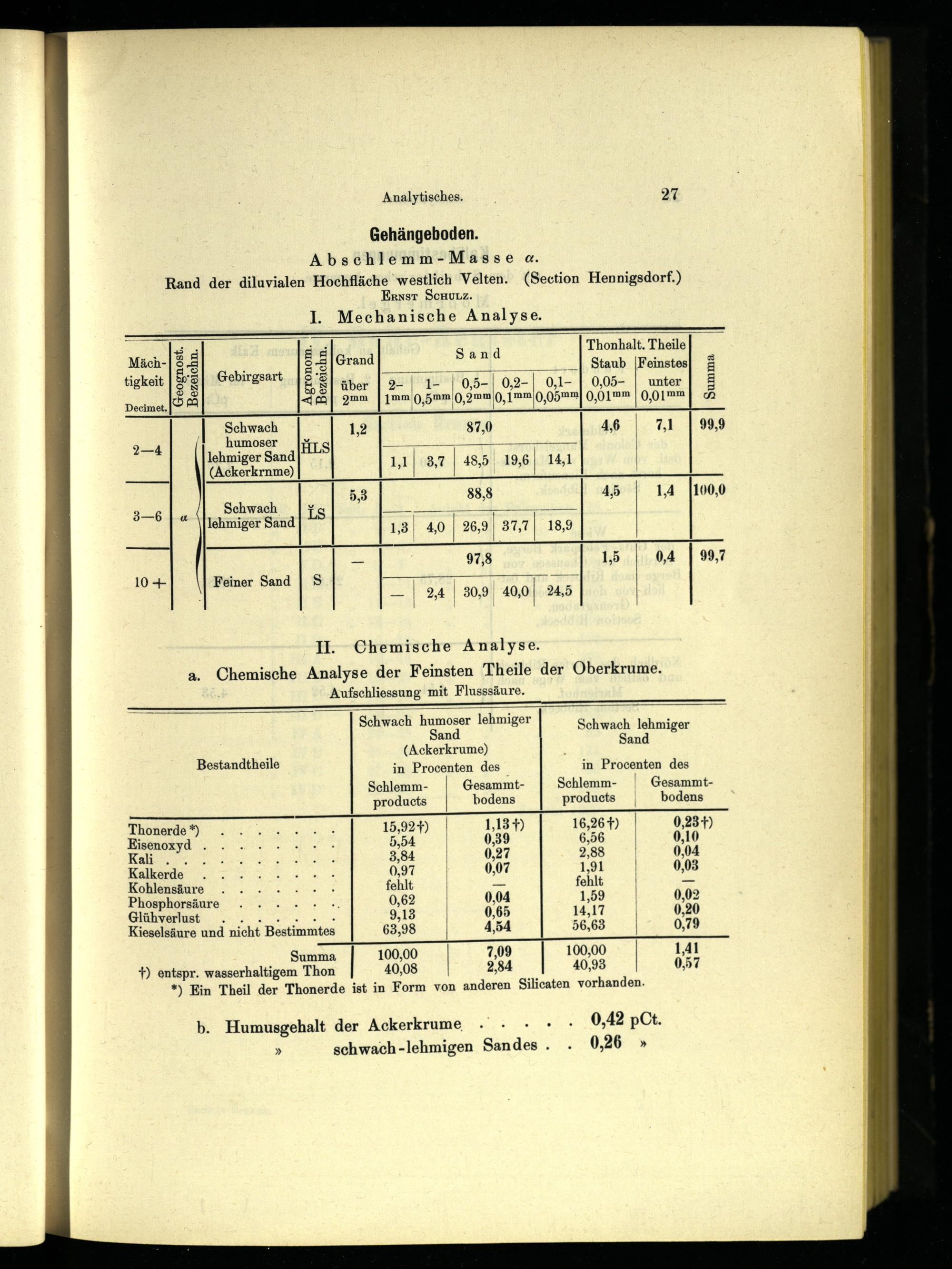 II. Chemische Analyse. a. Chemische Analyse der Feinsten Theile der Oberkrume.