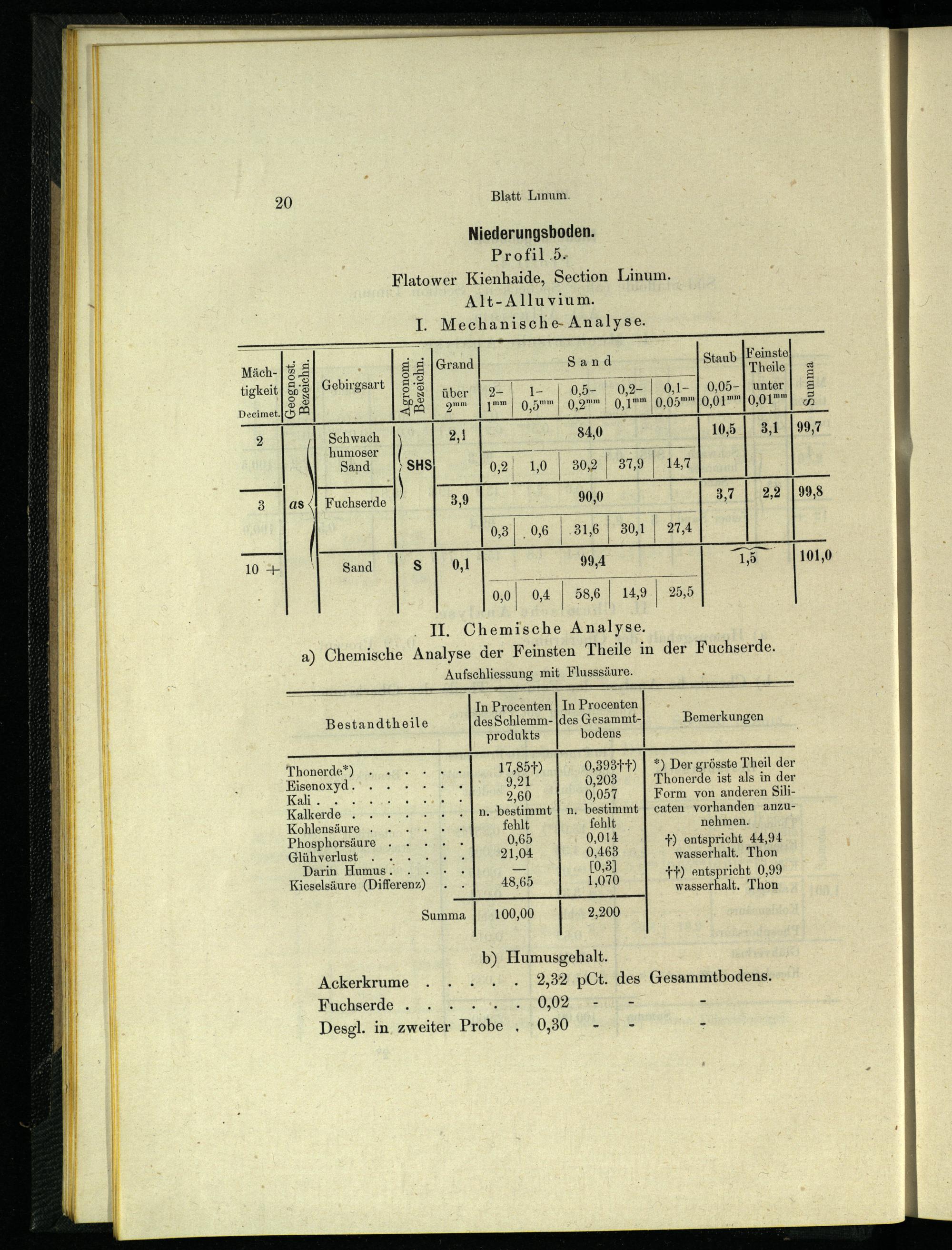 Niederungsboden. Profil ‚5. Flatower Kienhaide, Section Linum. Alt-Alluvium. I. Mechanische- Analyse.