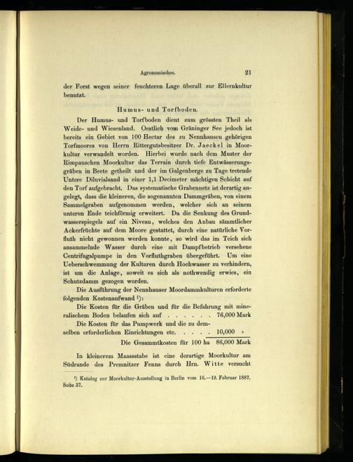 In kleinerem Maassstabe ist eine derartige Moorkultur am Südrande des Premnitzer Fenns durch Hrn. Witte versucht