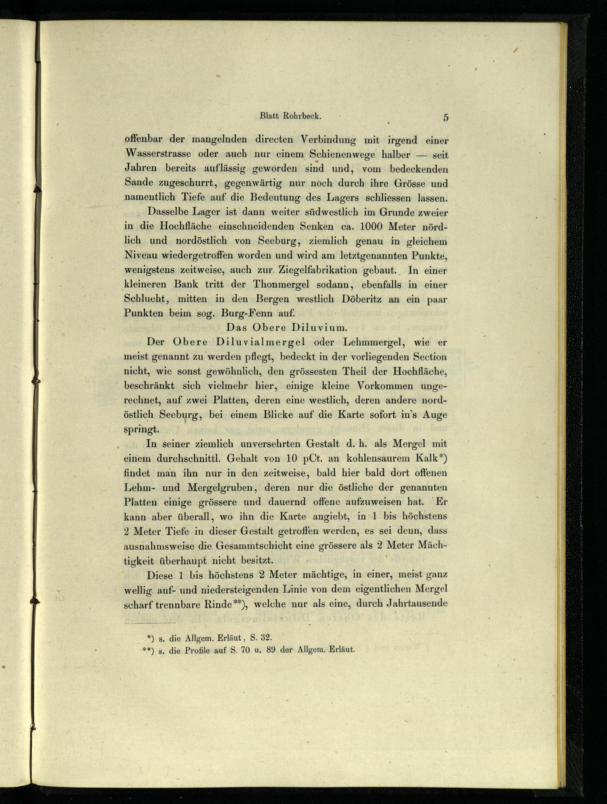 Der Obere Diluvialmergel oder Lehmmergel, wie er meist genannt zu werden pflegt, bedeckt in der vorliegenden Section nicht, wie sonst gewöhnlich, den grössesten Theil der Hochfläche, beschränkt sich vielmehr hier, einige ‚kleine Vorkommen ungerechnet, auf zwei Platten, deren eine westlich, deren andere nord